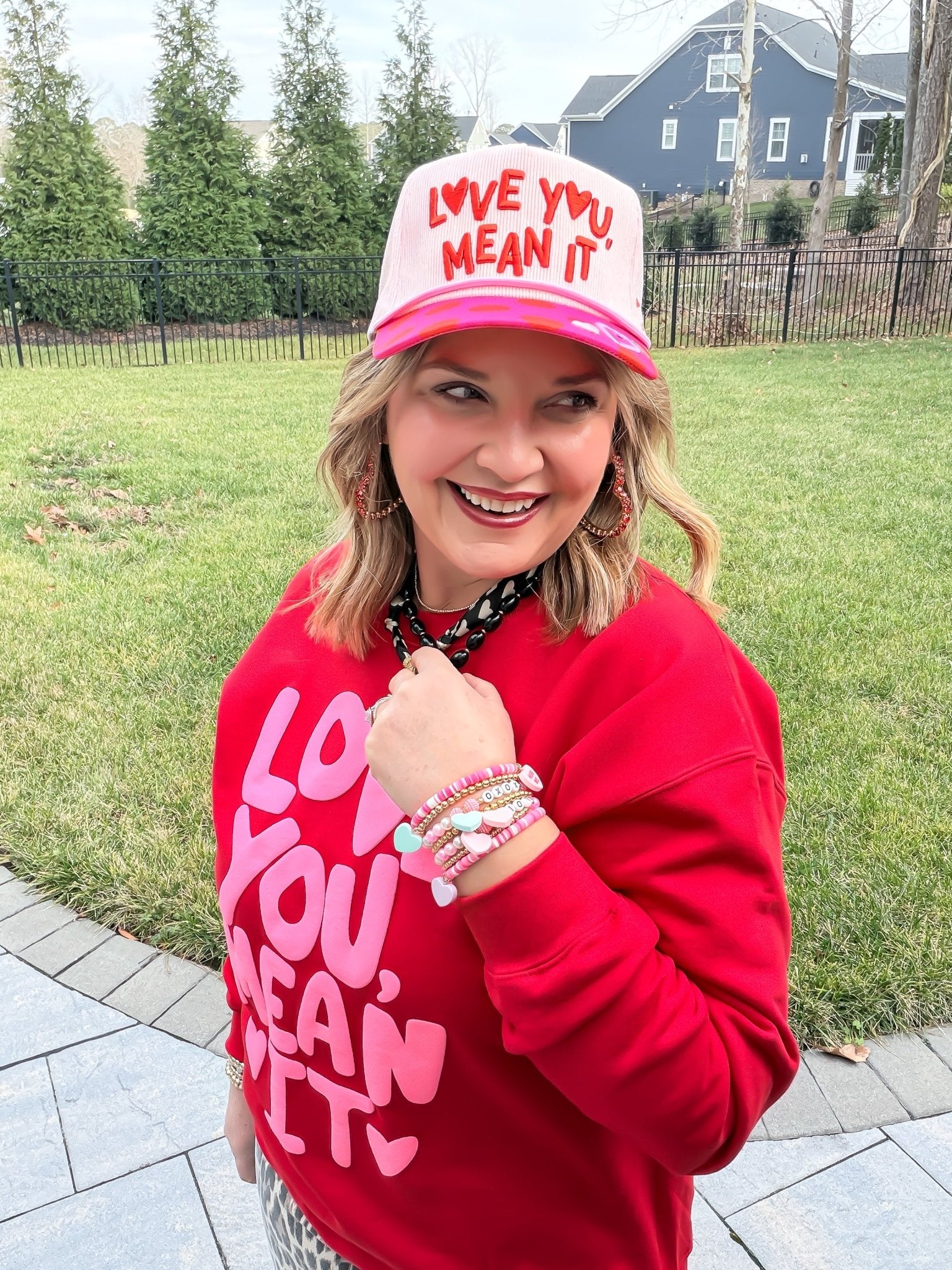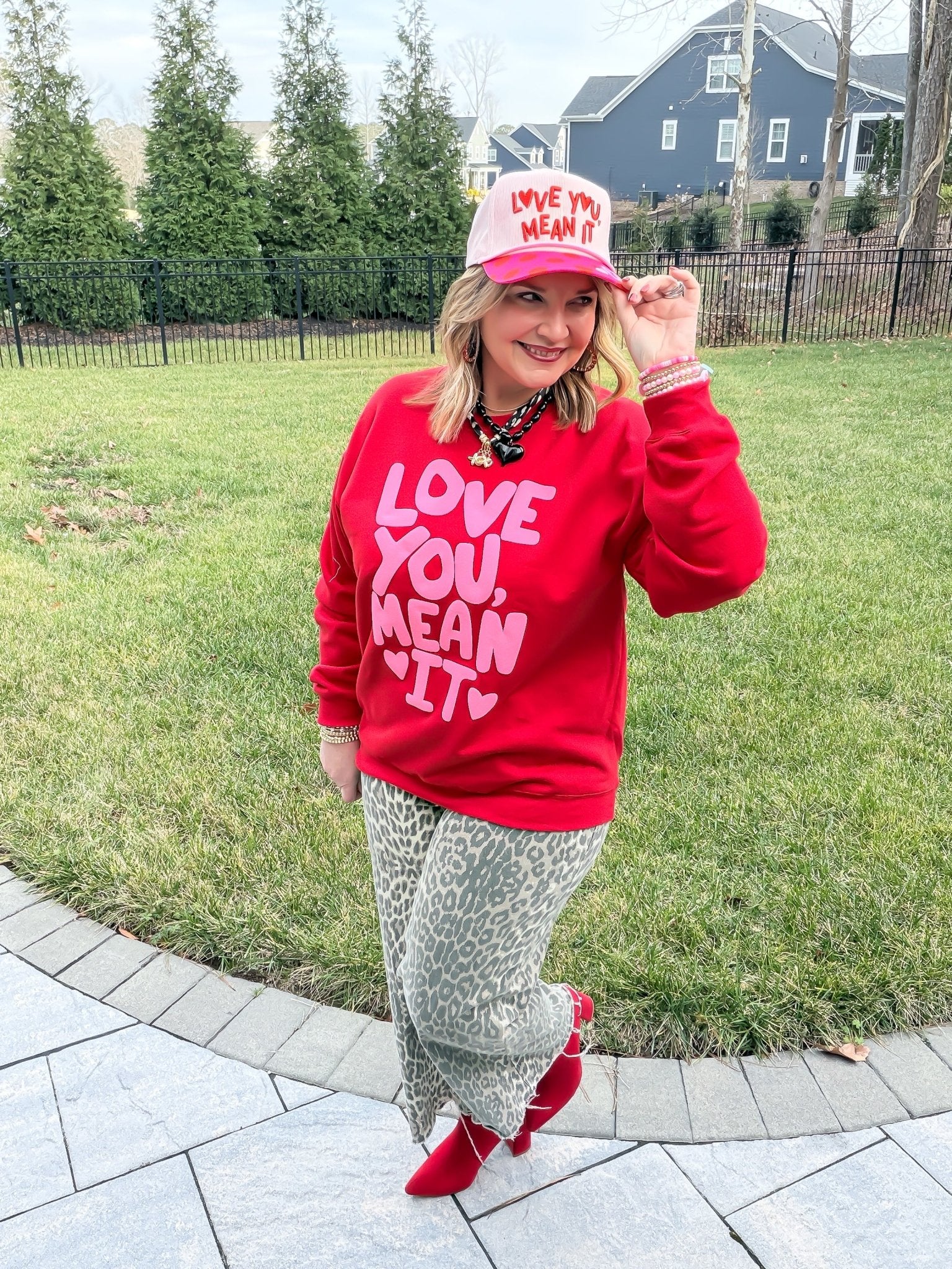 Wrap yourself in warmth and wear your heart on your sleeve with this "Love You Mean It" sweatshirt. Perfect for cozy nights in or casual outings, this playful piece lets you express affection with a smile. Soft, comfortable, and undeniably charming, it's the ideal way to show someone special just how much they mean to you—or treat yourself to a little self-love. Because sometimes the best declarations come wrapped in the coziest fabric.