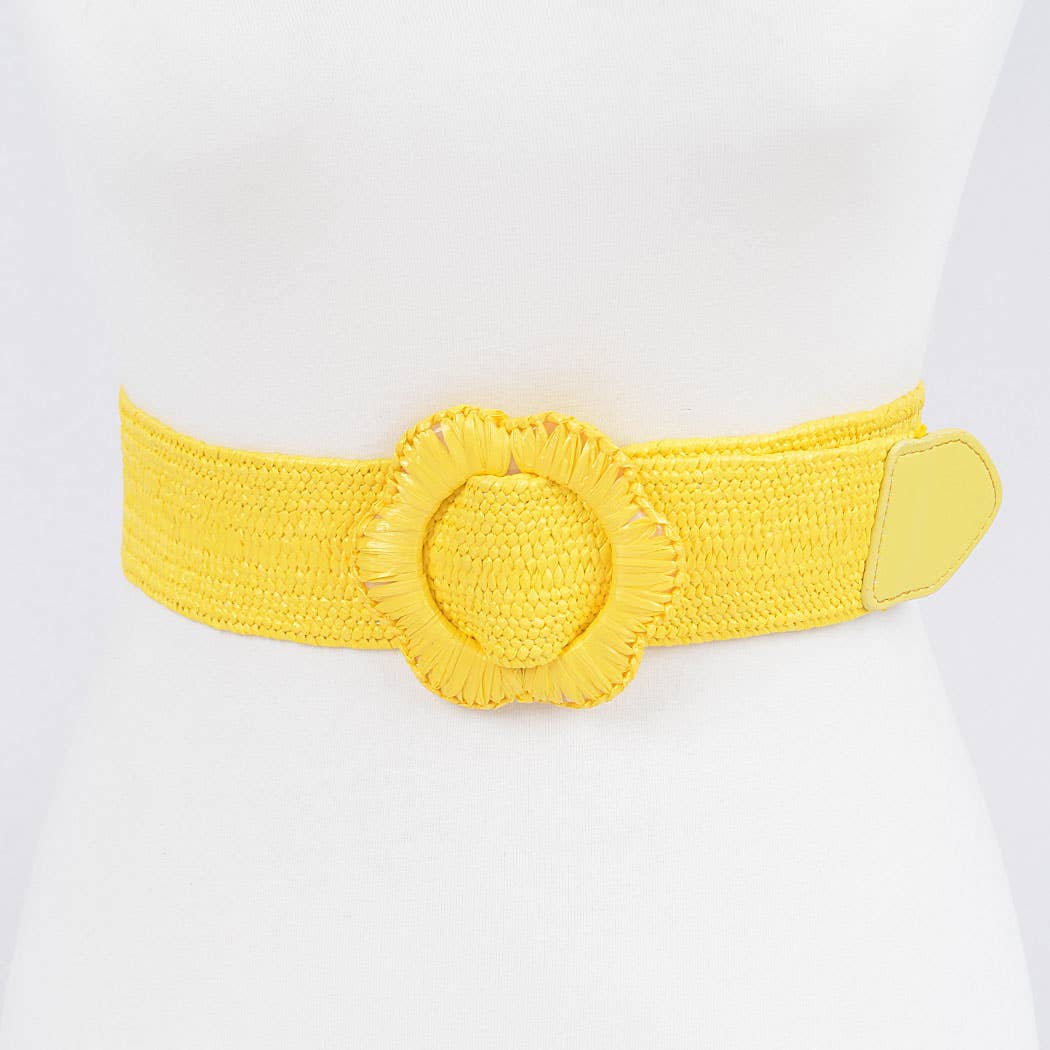 Elevate your seasonal wardrobe with the ultimate bohemian accessory. This Yellow Faux Straw Elastic Belt combines the rustic charm of traditional raffia with a modern, high-stretch fit. Designed to cinch your waist perfectly, it features a stunning tonal floral buckle that adds a touch of feminine flair to sundresses, linen tunics, and high-waisted trousers. Lightweight and versatile, it’s the perfect finishing touch for your next beach getaway or brunch date.