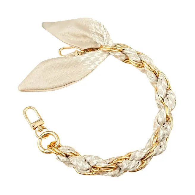 Keep your phone close in style with the Scarf Phone Chain! This gold-plated chain, paired with a trendy scarf, offers a fun and lightweight way to stay hands-free. It’s not just for your phone—you can clip it onto your favorite bag for extra flair. Thanks to a clever swivel design, your phone stays easy to grab, and the slim phone patch connects through the charging port without getting in the way. Perfect for adding a pop of personality while keeping life hassle-free!