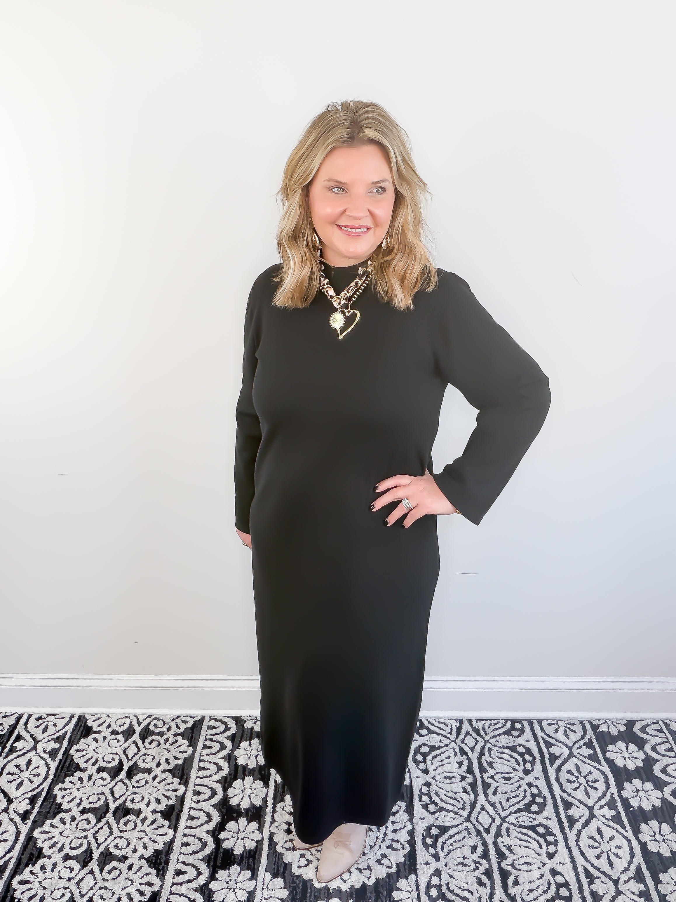 Step into effortless style with the Timeless Ease Midi Dress. This solid knit dress features a cozy mock neck and long sleeves, perfect for cooler days. Its medium-weight fabric is non-sheer, offering comfortable coverage without the need for lining. Whether you're dressing up or down, this midi length piece brings playful sophistication to your wardrobe with ease.
