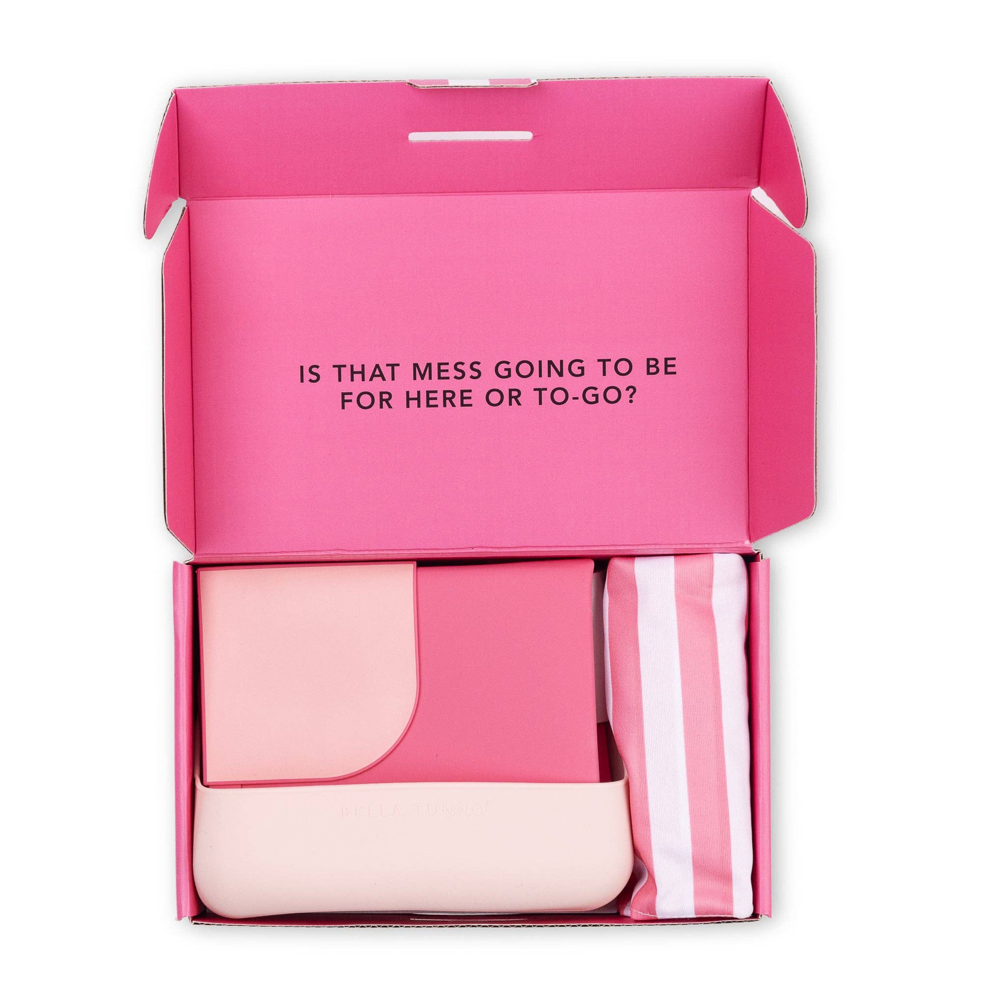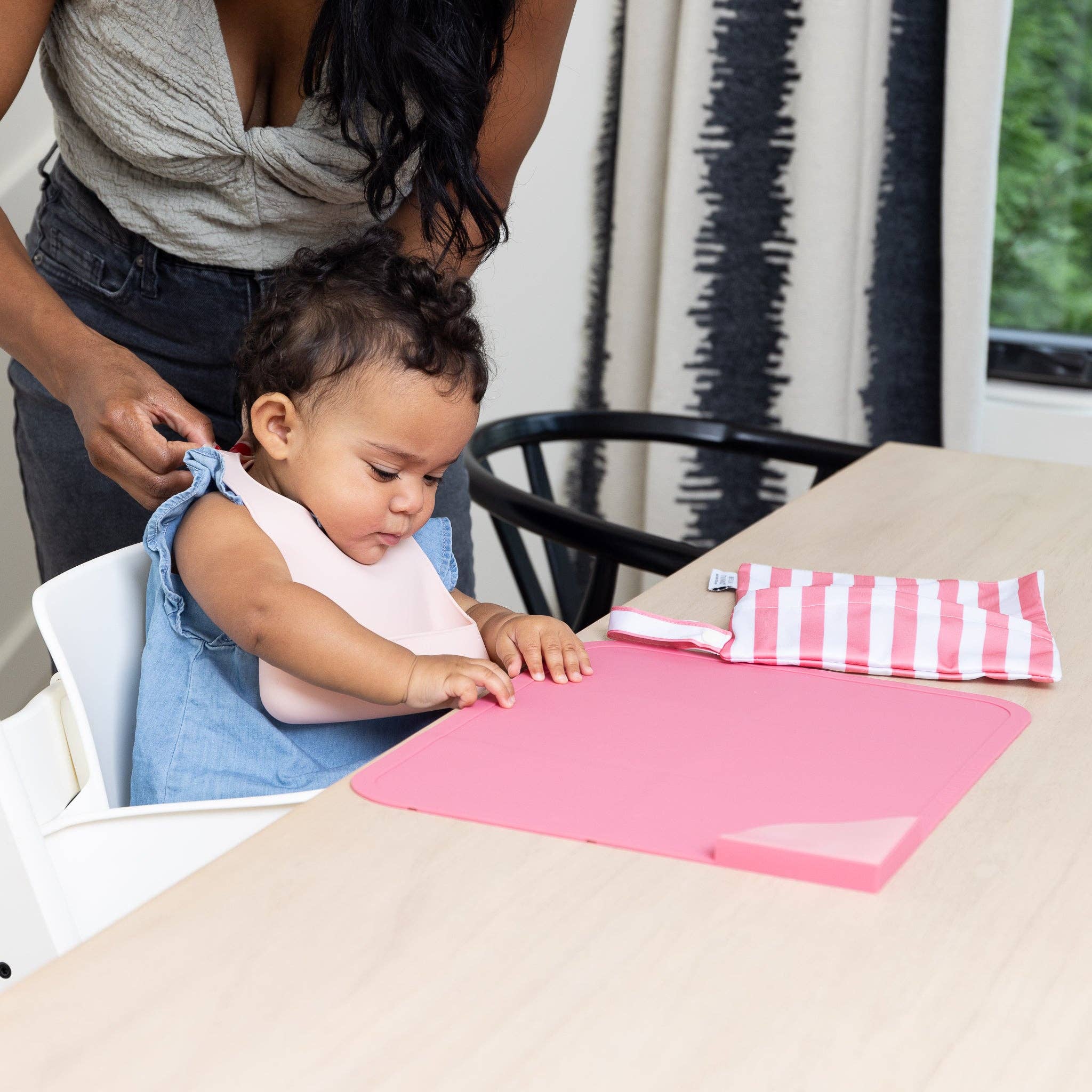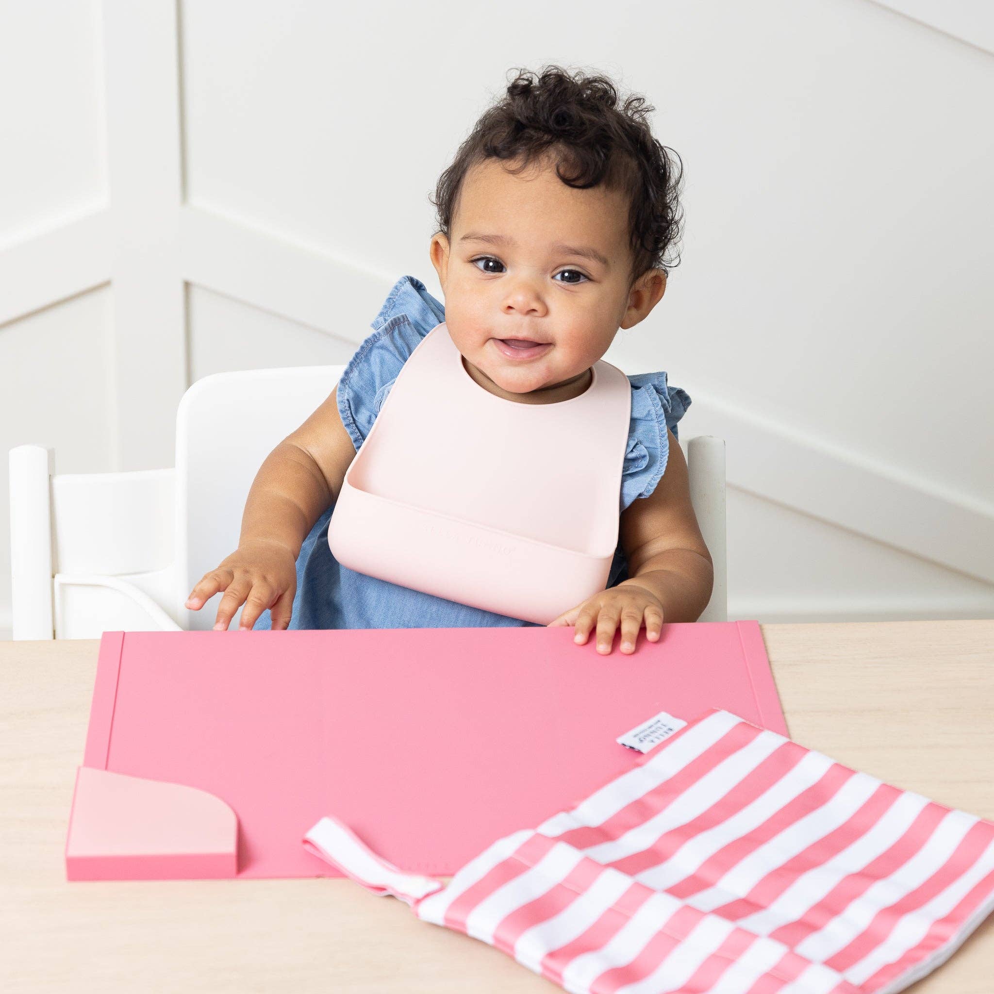 Introducing our expert-approved toolkit of mealtime essentials to take on-the-go! This set is the perfect new baby gift and a parent must-have. Just pack up the bib and placemat in the on-the-go bag, throw in some snacks and meals can happen anywhere.