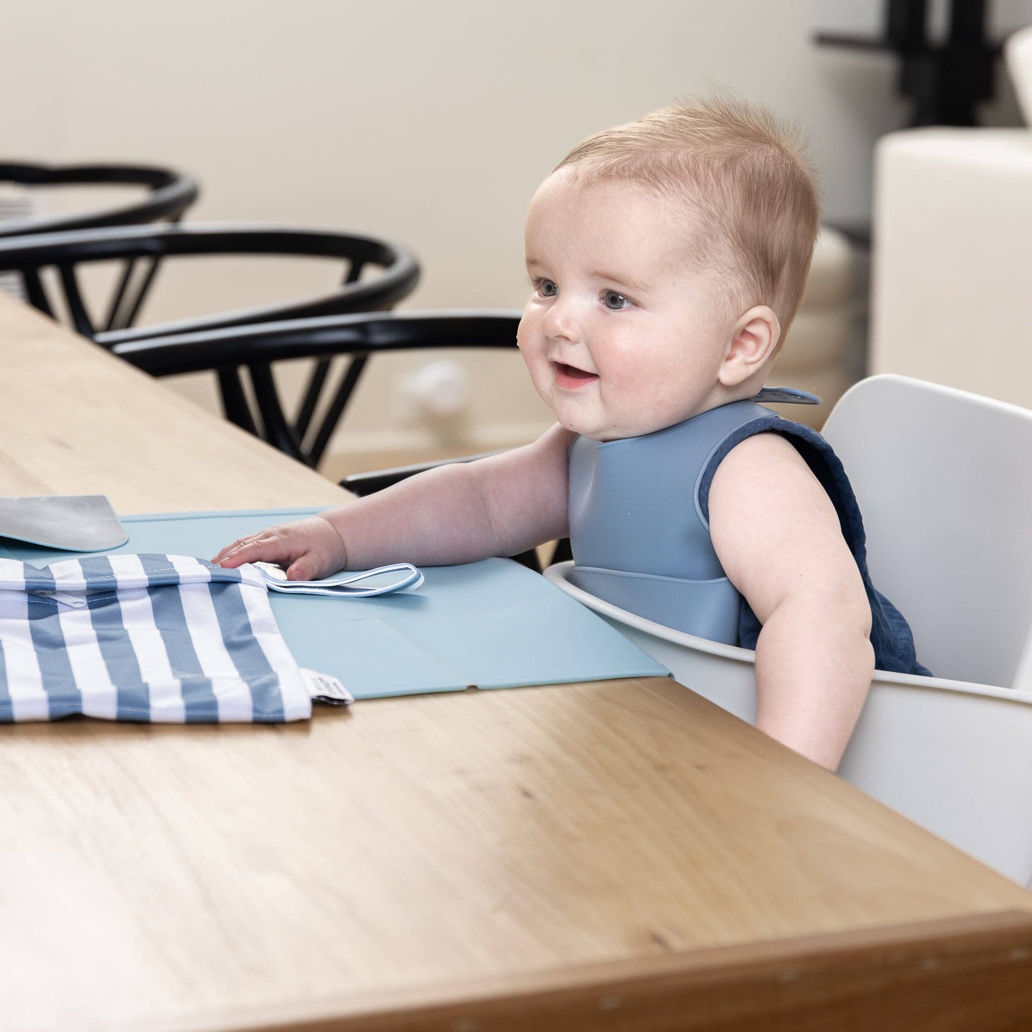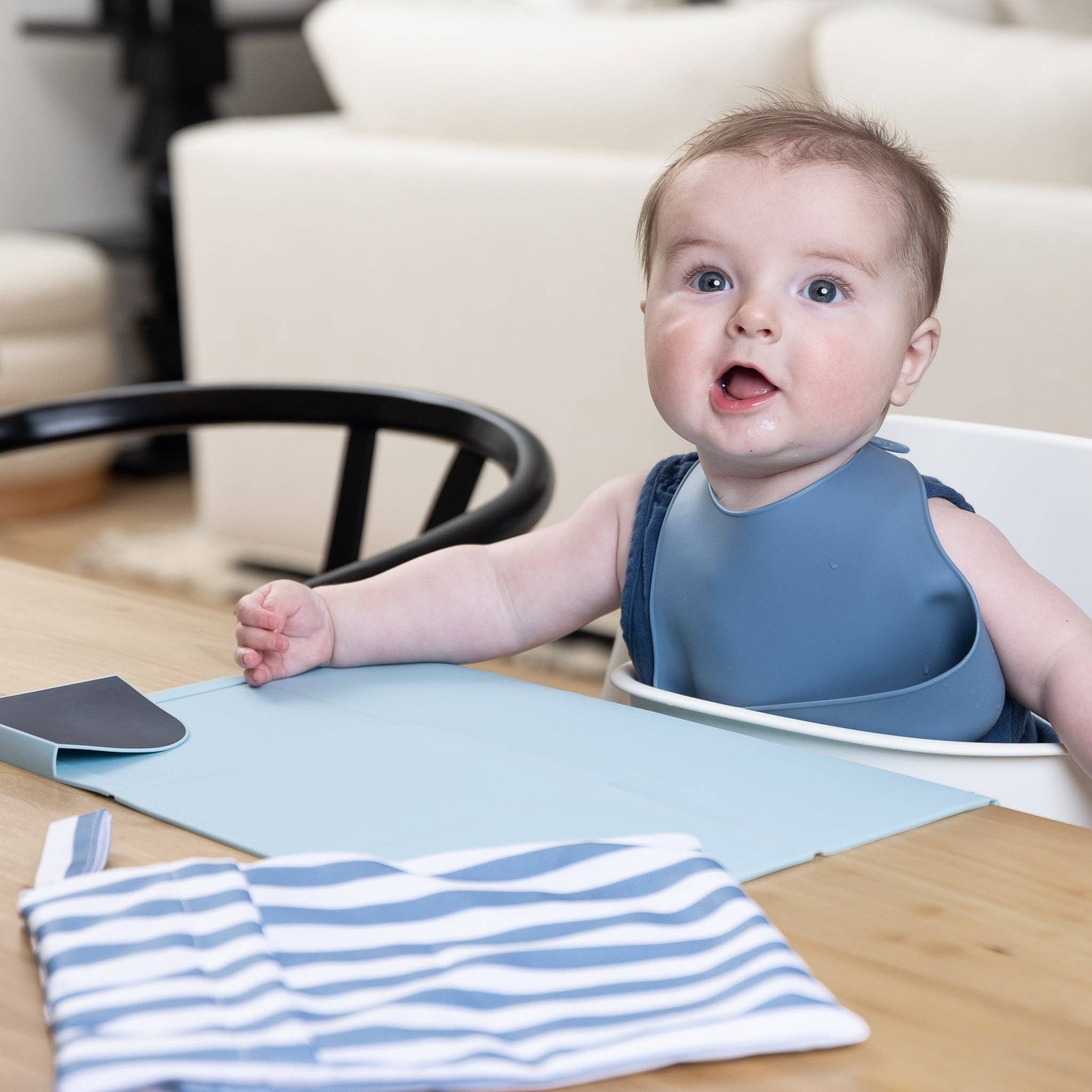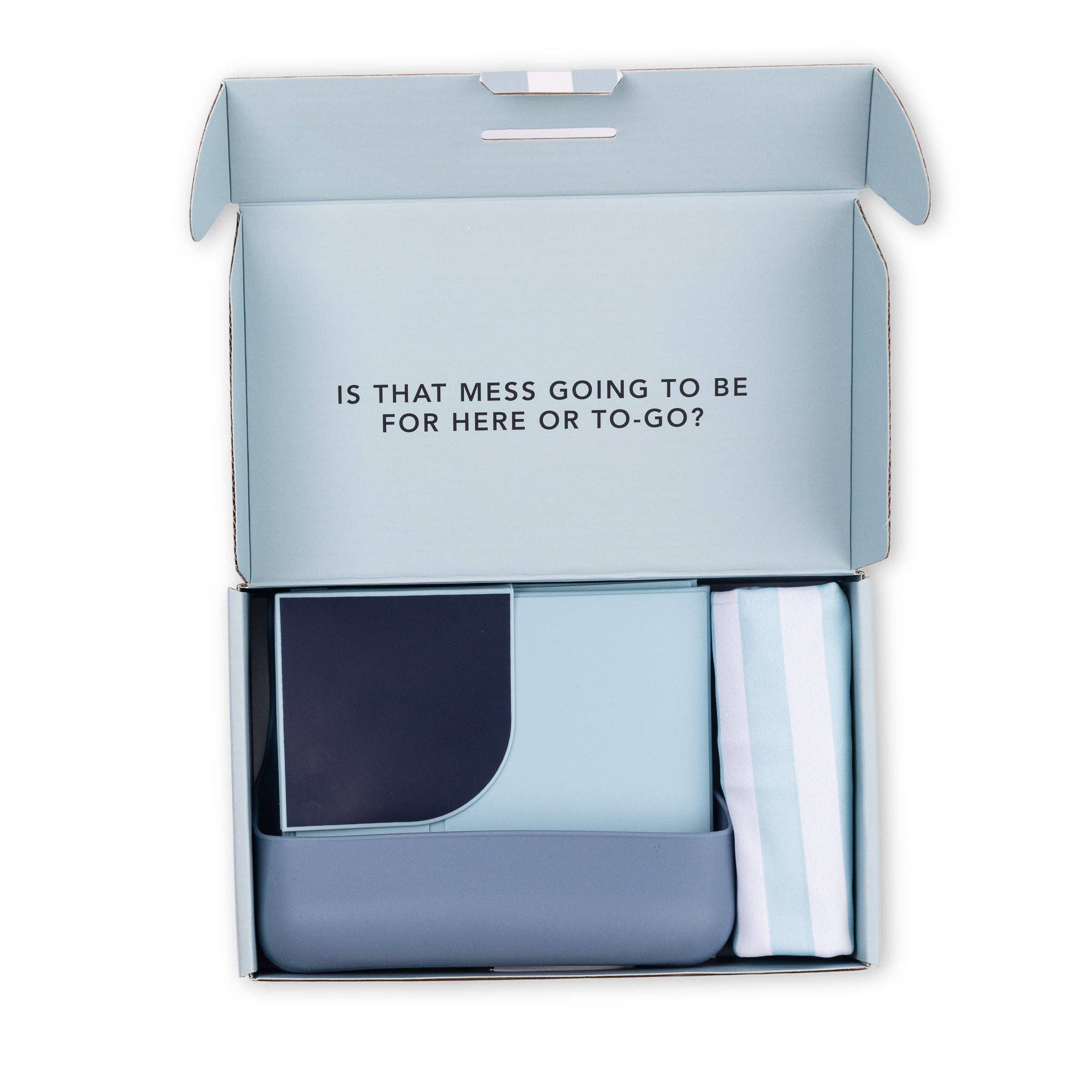 Introducing our expert-approved toolkit of mealtime essentials to take on-the-go! This set is the perfect new baby gift and a parent must-have. Just pack up the bib and placemat in the on-the-go bag, throw in some snacks and meals can happen anywhere.