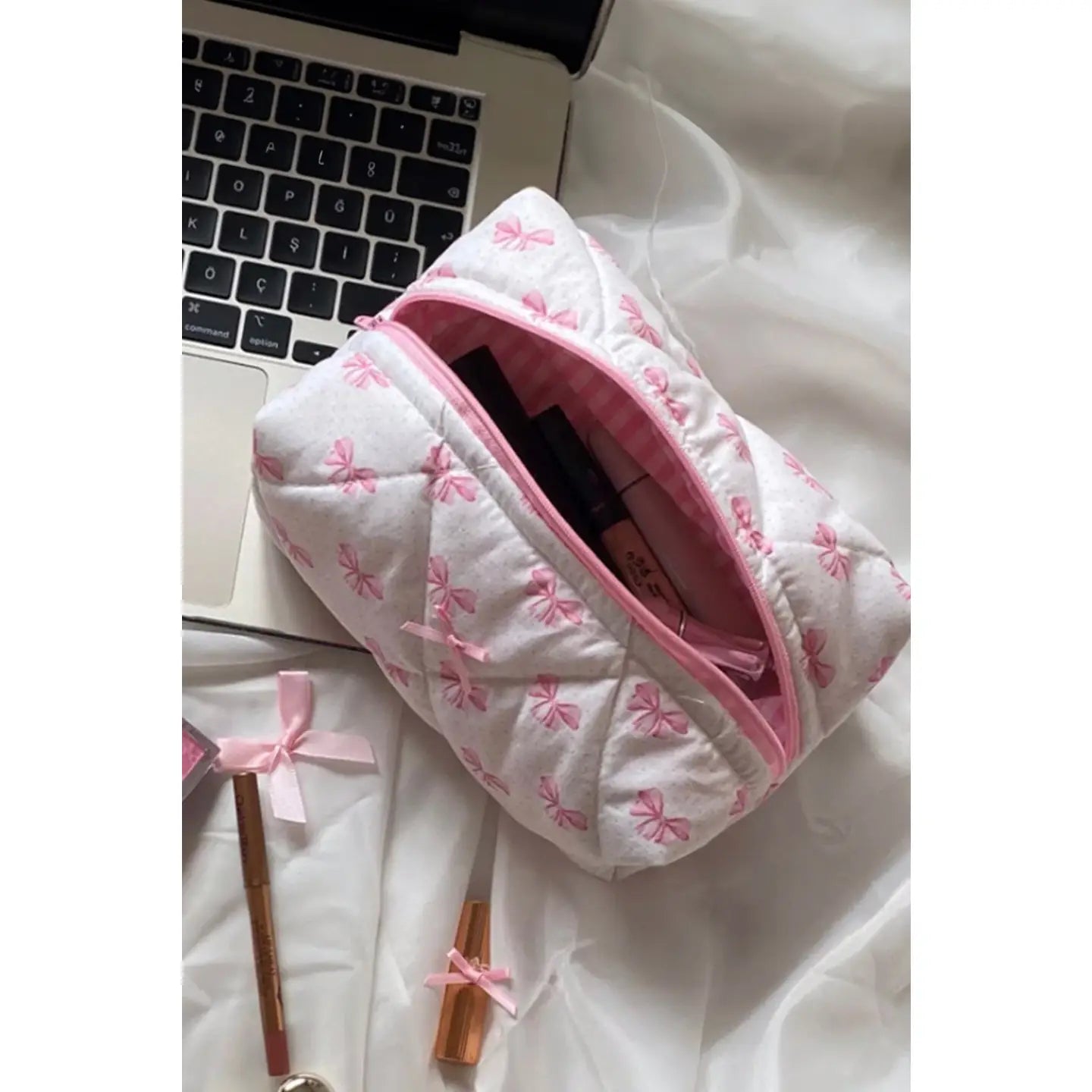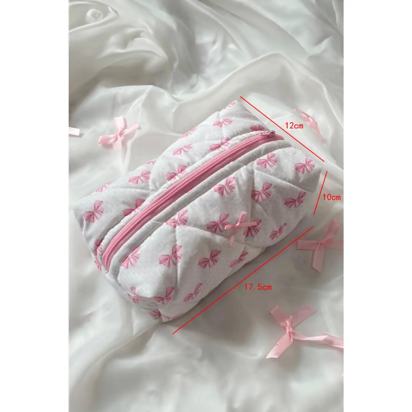 Bow & Ribbon Quilted Zipper Makeup Bag