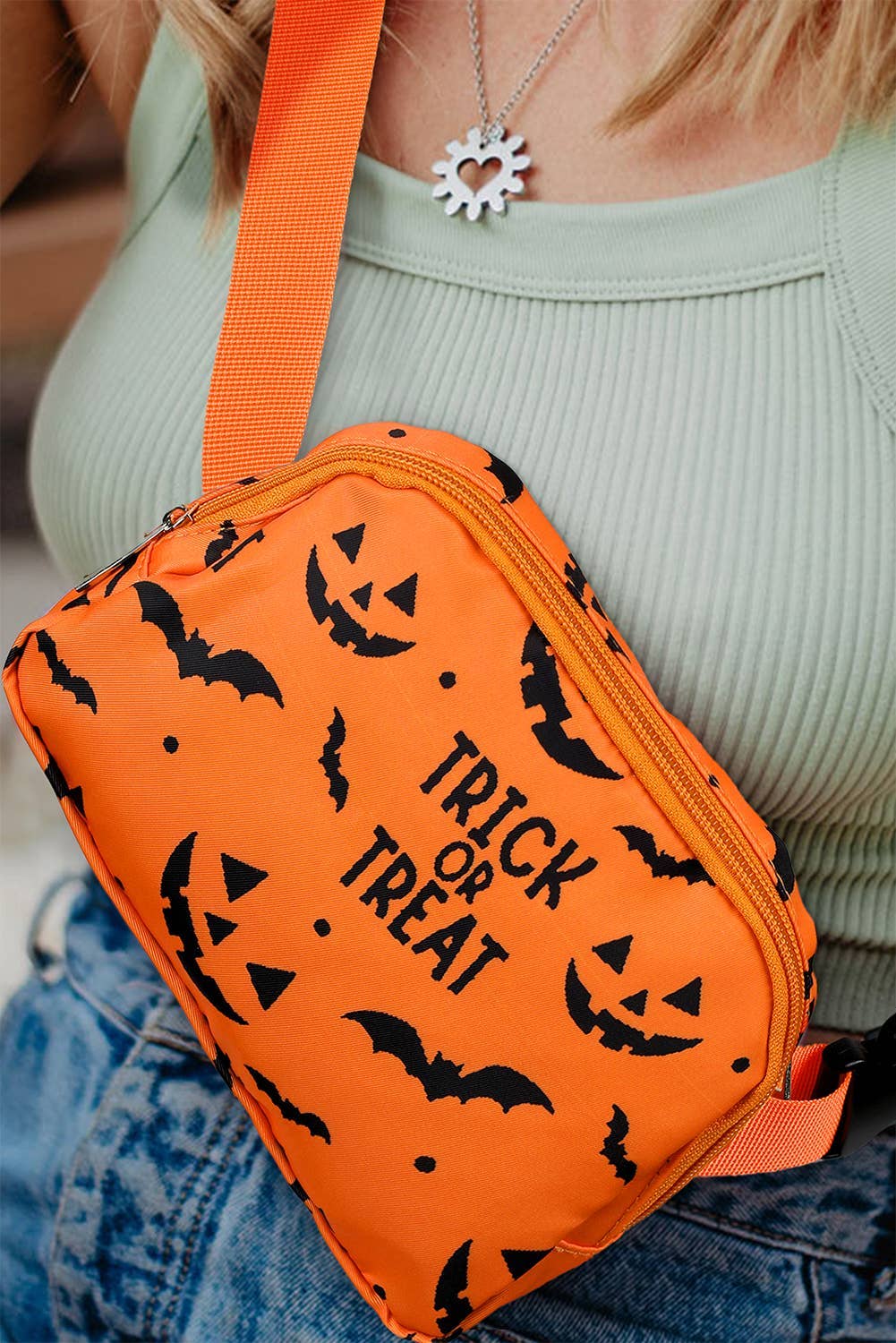 Carry your Halloween spirit everywhere with the Trick or Treat Graphic Crossbody Bag. This fun and festive accessory features a bold Halloween-themed design that adds a playful touch to any outfit. The convenient crossbody style keeps your essentials close and your hands free for collecting treats or enjoying fall festivities. Perfect for spooky season adventures, this bag combines practicality with a cheeky seasonal vibe.