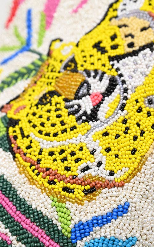 Strut your stuff with our Leopard Beaded Shoulder Bag, featuring a dazzling beaded front that showcases wild leopard patterns for instant outfit pizzazz! The eye-catching knot handle and shimmery handwoven Jacquard with lurex threads make this the ultimate conversation starter. This fun yet fabulous accessory guarantees you'll be turning heads and collecting compliments wherever your adventures take you!