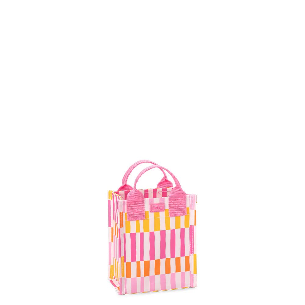 Tote-ally amazing! 🛍 Bright pinks and oranges reminiscent of hot summer days come together to create a bold cabana stripe design on pale blush background.