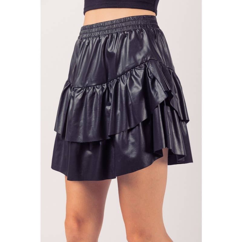 Strut your stuff in this flirty faux leather ruffle mini skirt! Crafted from buttery-soft vegan leather, it features cascading ruffles that add movement and sass to every step. The sleek silhouette pairs perfectly with crop tops, bodysuits, or oversized blazers for a look that's equal parts edgy and fun. Whether you're hitting the club or turning heads at brunch, this playful piece delivers major style without the guilt. Dress it up or down—this skirt is your new go-to for making a statement.
