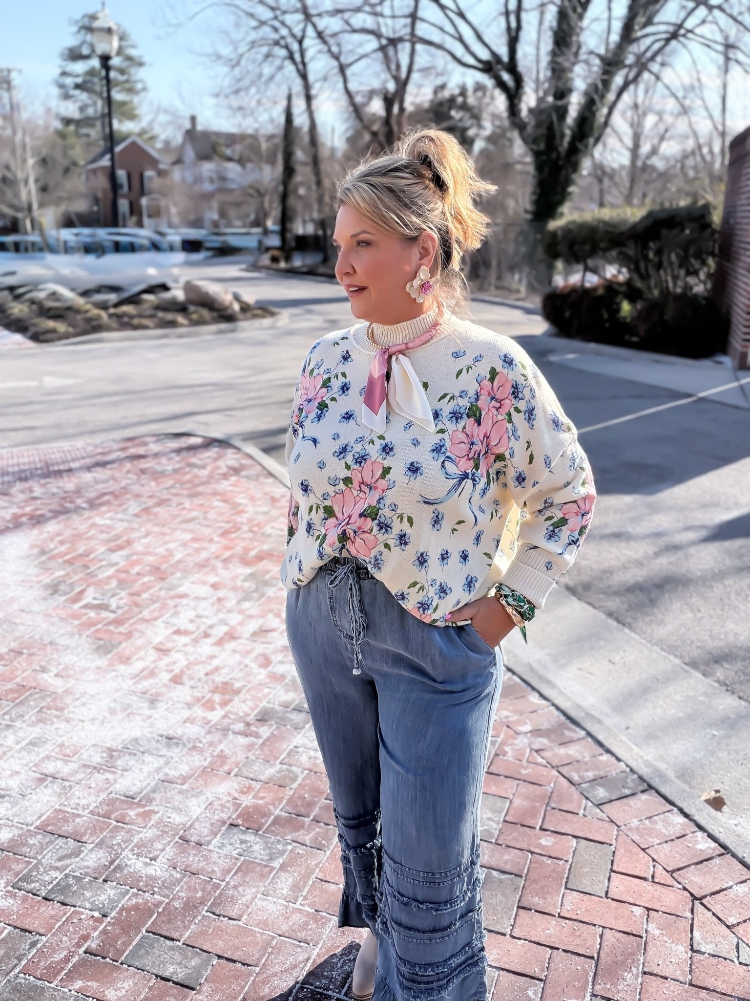 Elevate your denim game with these Chambray Charm Crop Pants—where vintage vibes meet modern flair. Featuring a high-waisted silhouette with an elasticized waistband and adjustable self-string for the perfect fit, these beauties showcase a relaxed, comfortable cut that moves with you. The standout wide ruffled legs with frayed edge detailing add playful personality, while the flared silhouette keeps things breezy and fun. Crafted from soft washed chambray denim and equipped with practical side pockets, they're your new go-to for effortless style that works from brunch to evening plans.