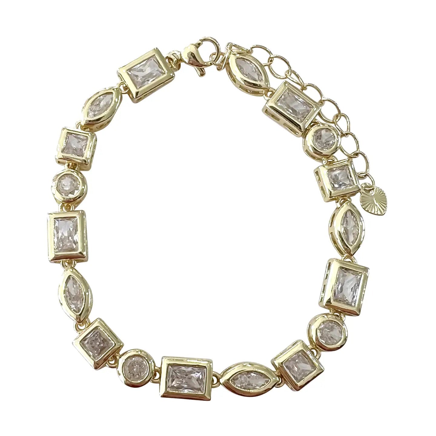 Elevate your wrist game with the Violet Bracelet—a dazzling 18k gold-plated stunner that's as versatile as you are. This 7" adjustable design fits just right, while sparkling CZ details catch the light with every gesture. Perfect for stacking, layering, or wearing solo, it's the accessory that works as hard as you do. Dress it up or keep it casual—this beauty does it all.