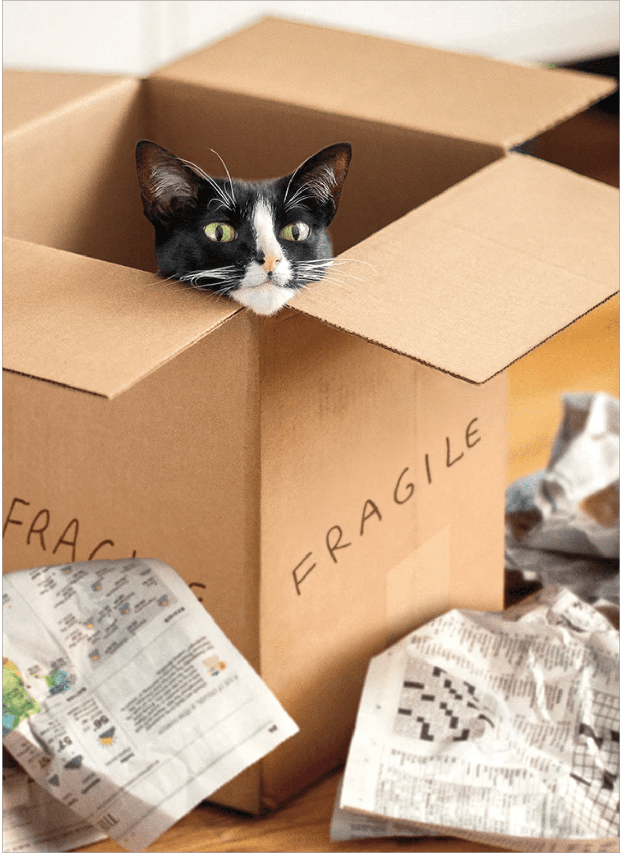 Inside: Hope you're happier than a cat in a box! Congratulations on your new home