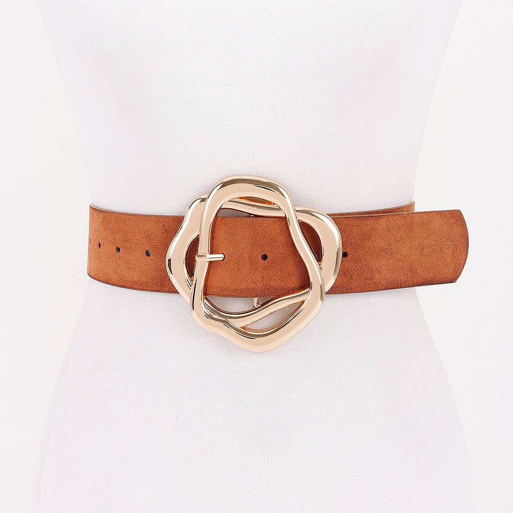 Add a splash of fun to your outfit with the Totally Twisted Buckle Belt. Its soft suede-like strap pairs perfectly with a bold, twisted metal buckle that steals the show. This playful accessory effortlessly turns any look into a standout style moment.