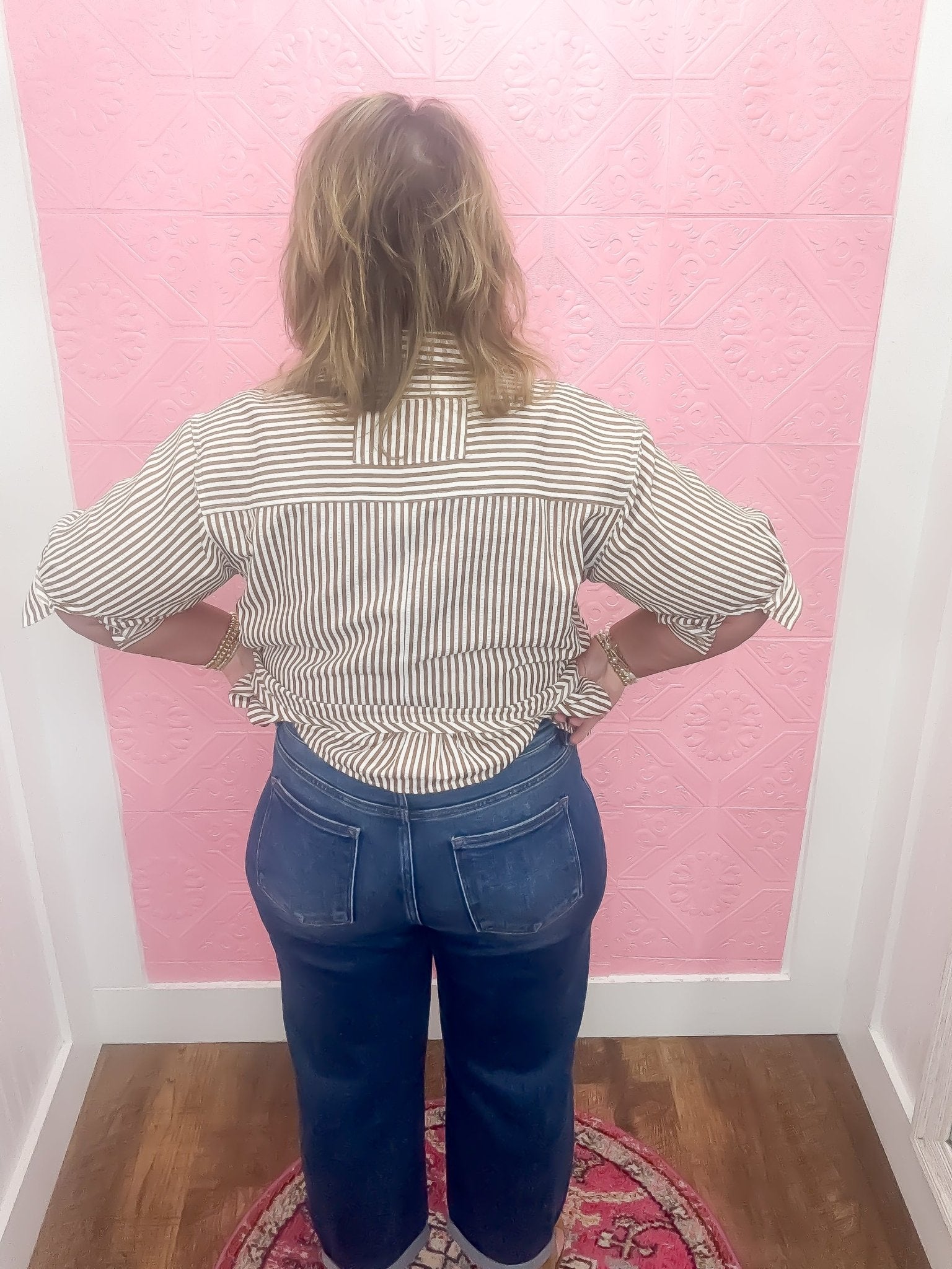 Step into fun and flirty style with The Barrel Crop Jean! These high-rise jeans hug your waist for a flattering fit and end right above the ankle for that perfect cropped look. Whether you're headed out for brunch or a casual day around town, their confident cut pairs easily with your favorite tops and shoes. Add a twist to your denim collection with jeans that bring both comfort and a pop of personality to your everyday look.