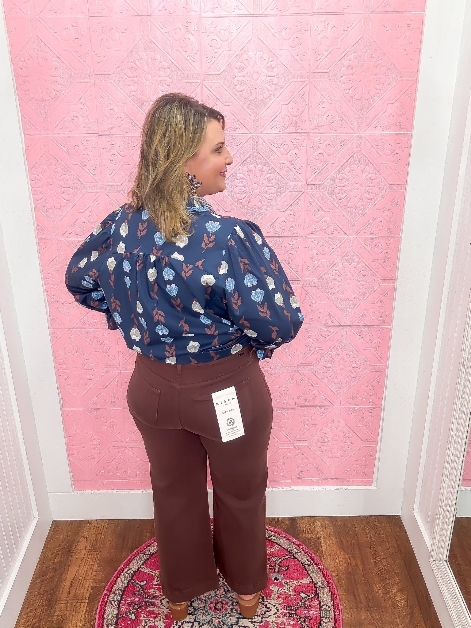 Step into comfort and confidence with The Mocha Crop Jeans. These chocolate-colored wide crop pants feature a high-rise design with tummy control to flatter your silhouette while keeping you comfy all day. Their relaxed fit adds a playful, effortless vibe perfect for both casual brunches and weekend adventures. Blend style and ease seamlessly with these must-have pants!