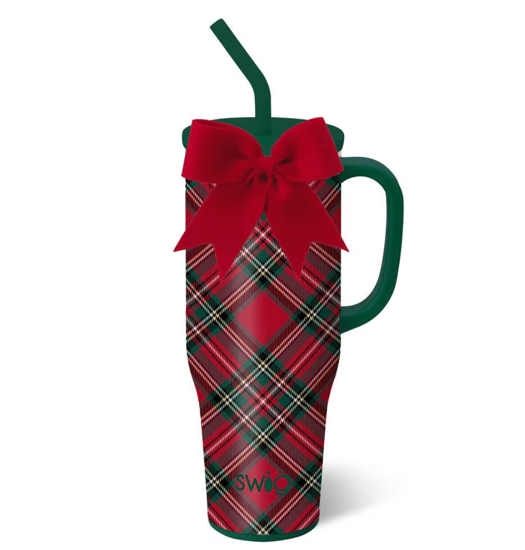 Mega sips, mega chill! 🧊 Celebrate the season in timeless style with this red and green traditional Christmas tartan design. A removable charming bow adorns each item like a gift.
