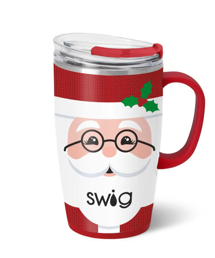 Take a "swig" of whatever fuels your day! ☕🚗 HoHoHo here comes Santa Claus dressed in his traditional red glitter knitted suit trimmed with fur. 🎅