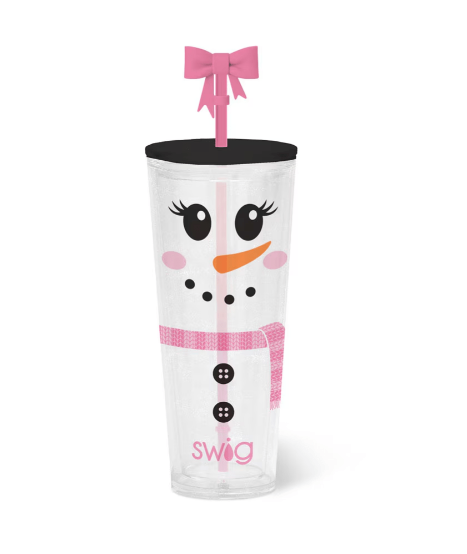 Perfect for whatever or wherever you drink! 🌟🥤 Thumpity thump here comes Frosty made of glitter white snow and dressed in a knitted pink scarf.