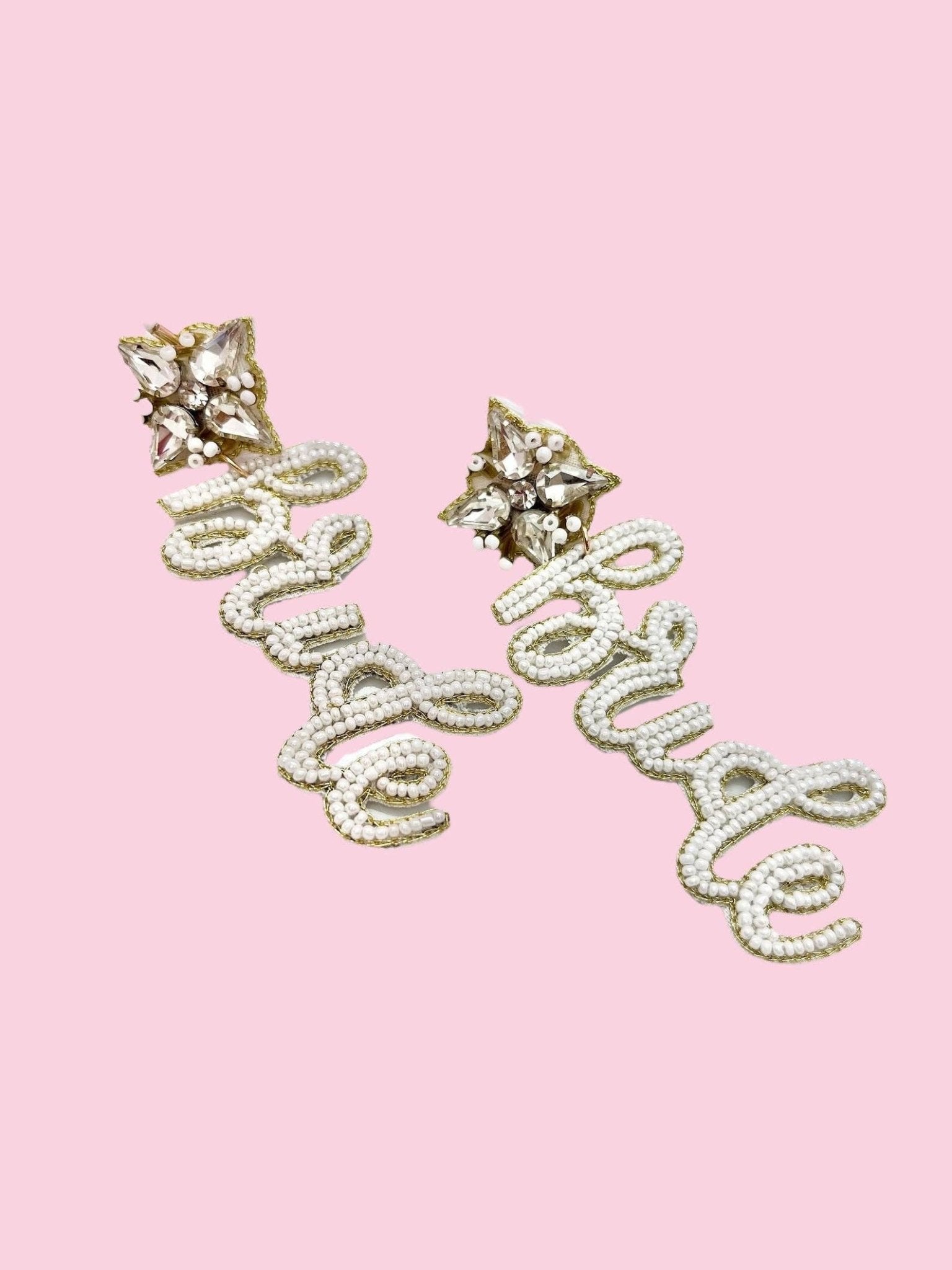 Add some bling to your wedding day with these Bride Beaded Earrings. These stunning earrings will make you feel like the star of the show, elevating your bridal look to the next level. The intricate beadwork adds a touch of elegance while still keeping the playful tone of your special day.