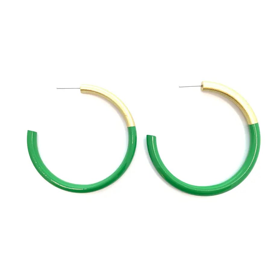 - Handcrafted, lacquered water buffalo horn hoop earrings