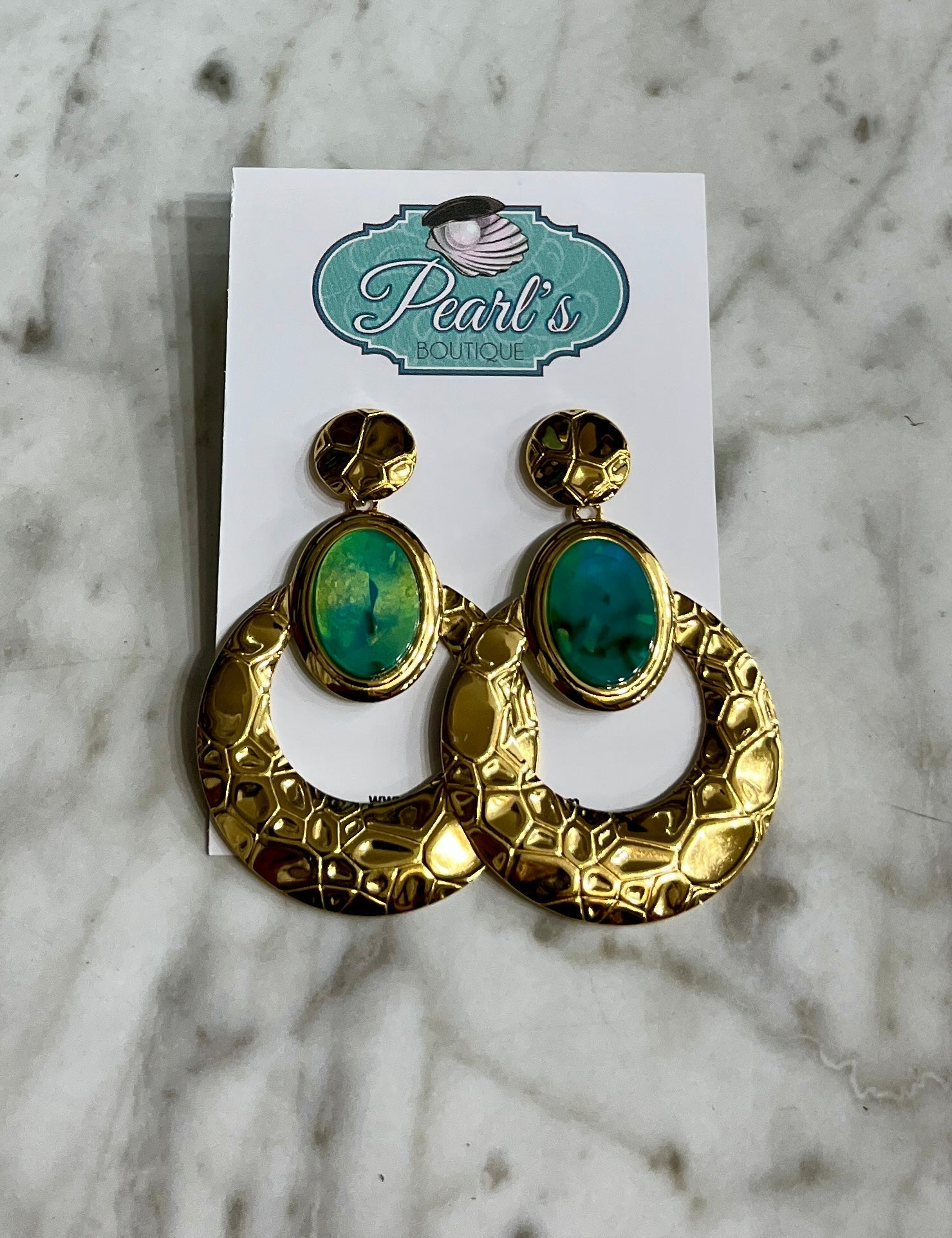 Get ready to shine with these Lustrous Gem Earrings! Made with a gold design and featuring a stunning stone, these earrings will add a touch of glamour to any outfit. Perfect for a night out or special occasion. Shine bright and stand out with these eye-catching earrings!
