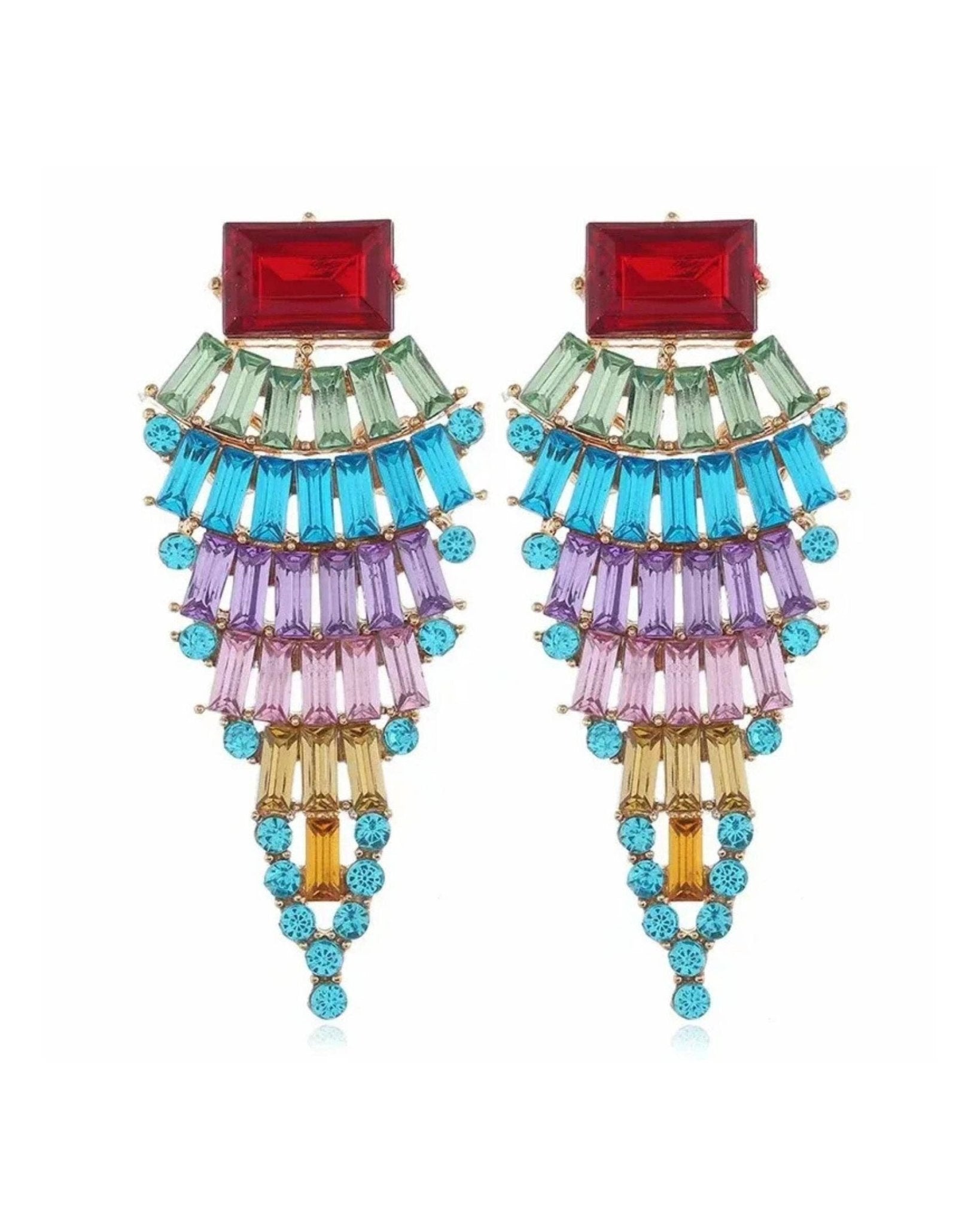 Add a splash of fun with the Mira Statement Earrings! These 2.5-inch glass beauties showcase a lively burst of red, green, blue, pink, and purple stones, making them impossible to ignore. Designed to brighten up any outfit, they’re lightweight and comfy enough to wear from day to night. Perfect for anyone ready to turn heads and embrace bold style with a joyful twist!