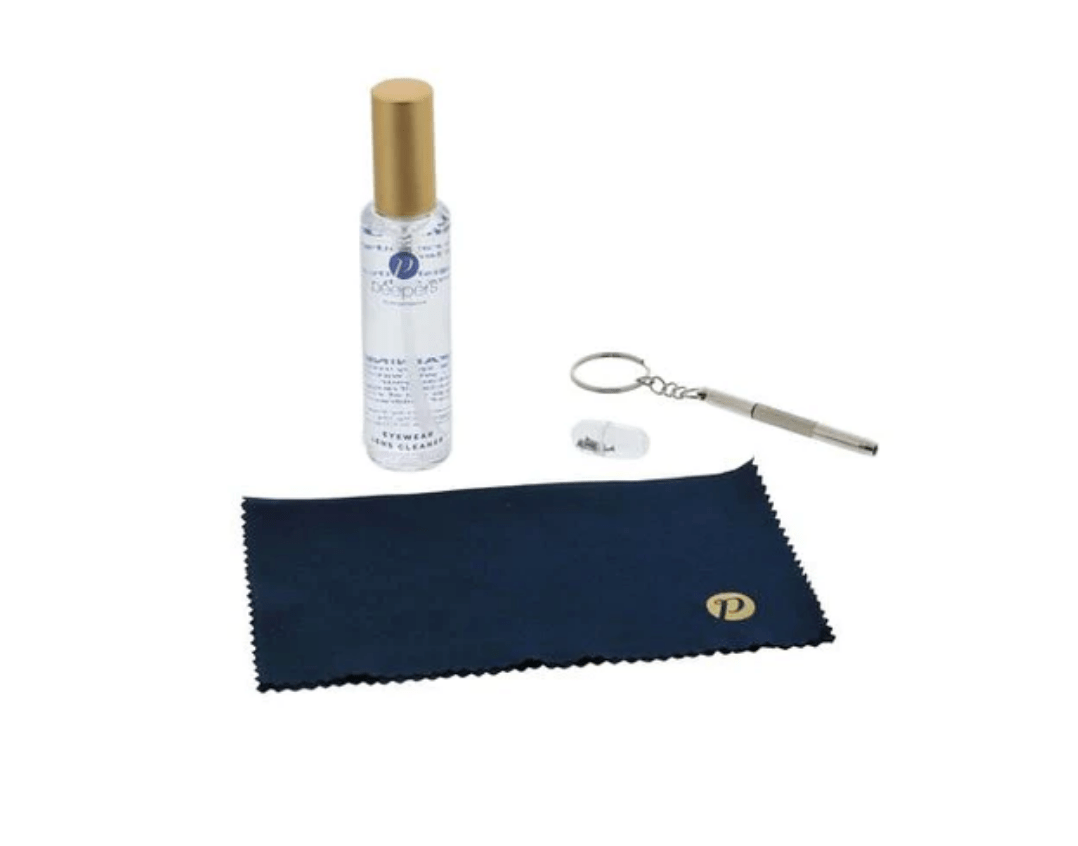 A must-have companion to your new readers, our cleaning kit has everything you need to keep your glasses in tip top shape. Along with a bottle of lens cleaner, we’ve also included a microfiber cleaning cloth featuring Peepers’ latest design and a mini-screwdriver. We even throw in a set of spare screws. Conveniently sized so you can take this kit along with you anywhere.