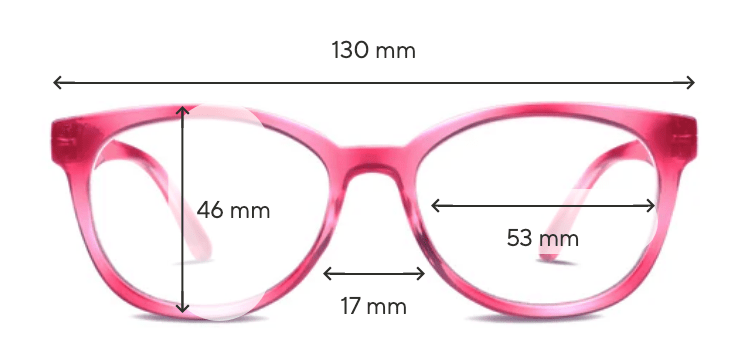 • Frame Width: 130 mm (5.1 in),Frame Height: 46 mm (1.8 in),Eye Size: 53 mm (2.1 in),Nose Bridge: 17 mm (0.7 in)