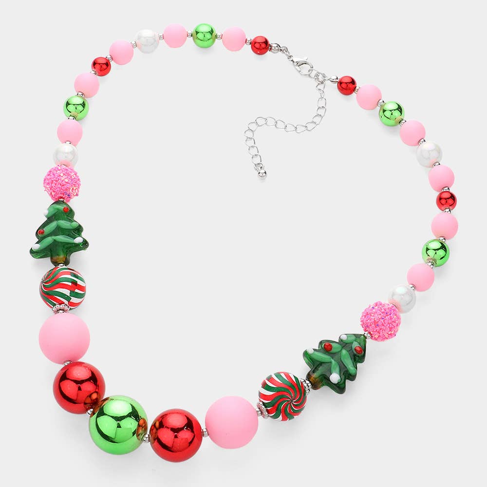 Add a festive touch to your holiday outfit with this Christmas Tree Candy Ornament Beaded Necklace with matching earrings. Featuring colorful beads and a charming candy-themed tree pendant, it’s perfect for spreading cheer at parties or family gatherings. Lightweight and fun, this necklace brings a playful sparkle to any holiday look, making it a delightful accessory for celebrating the season in style.
