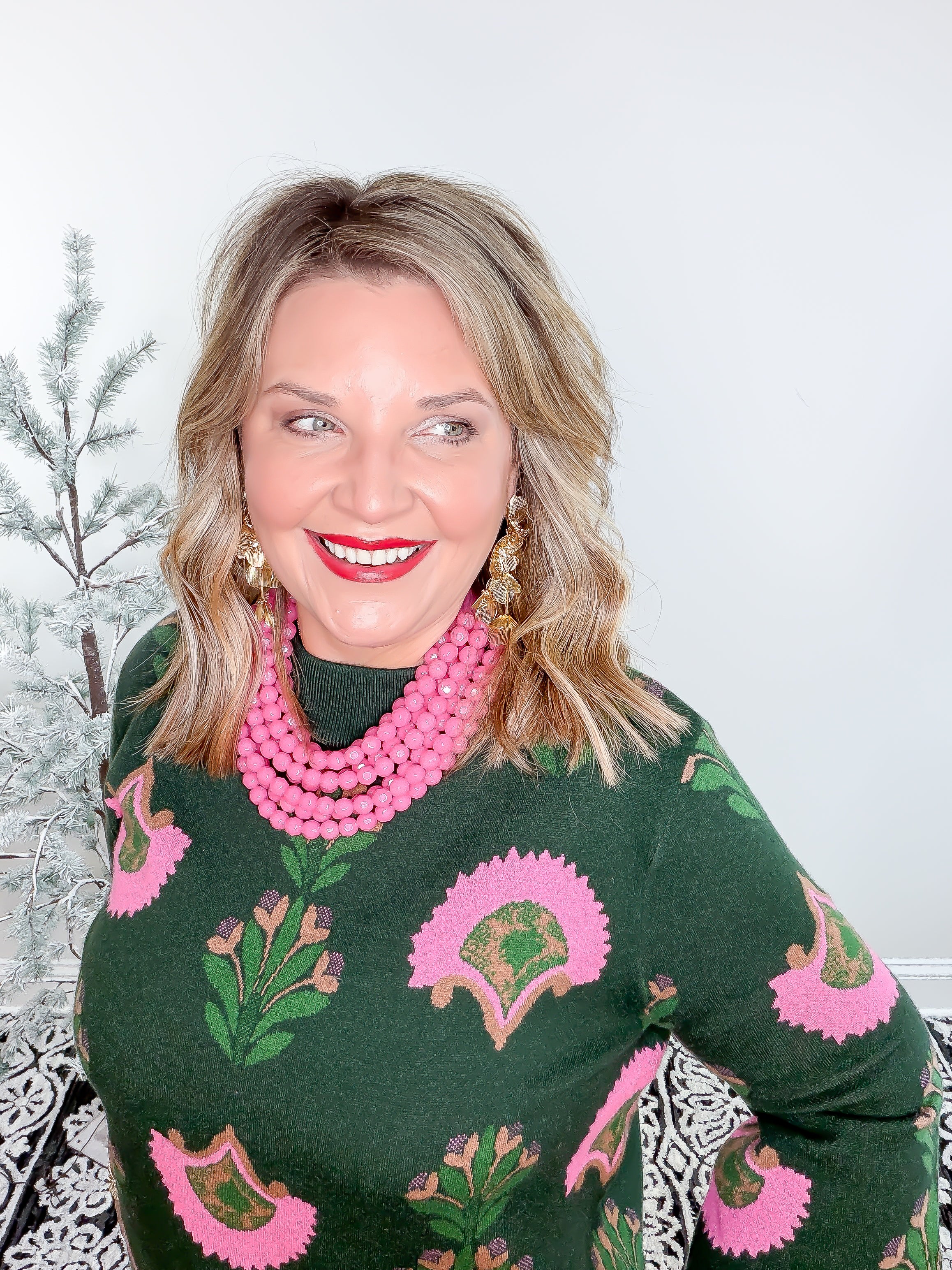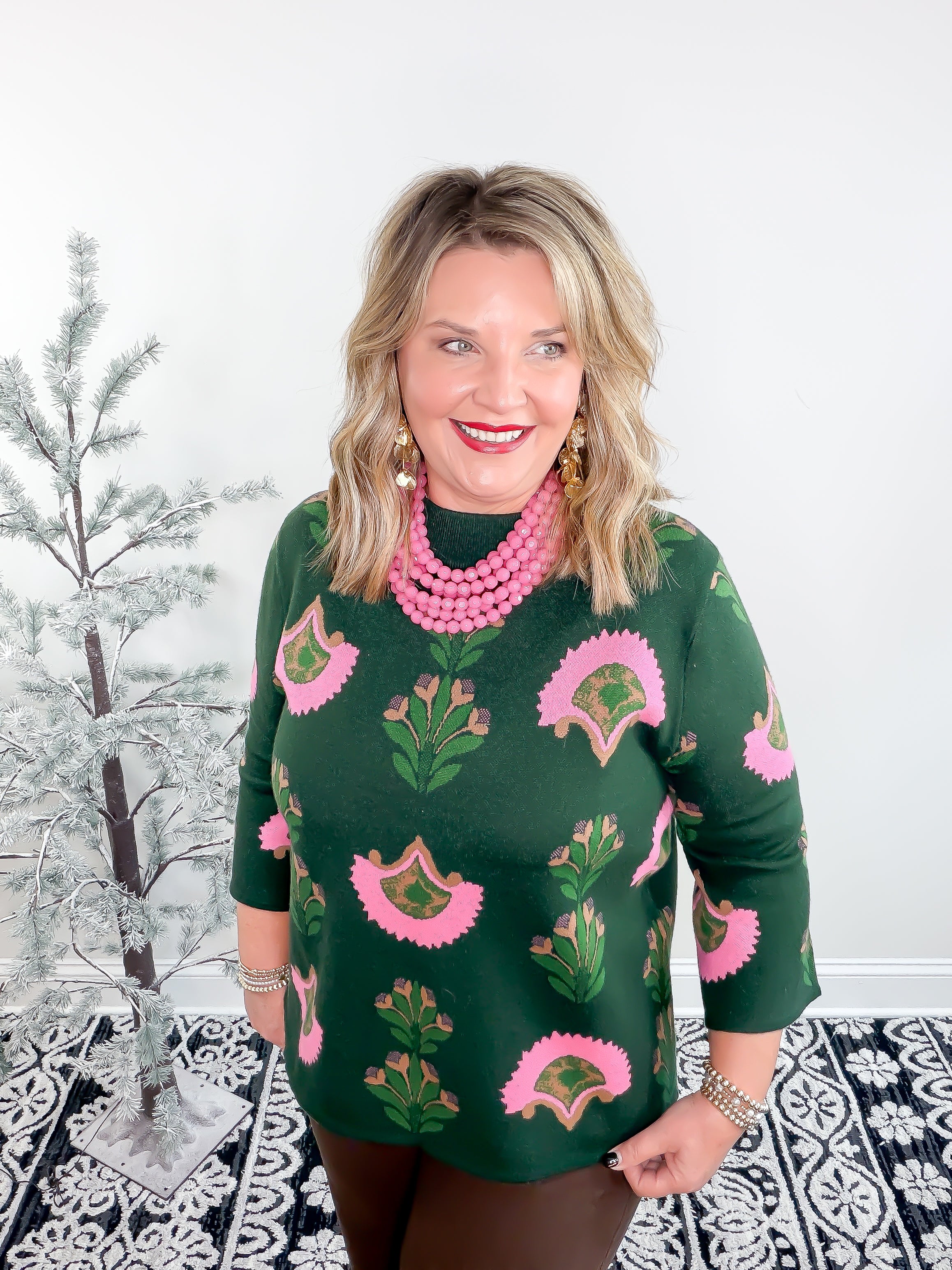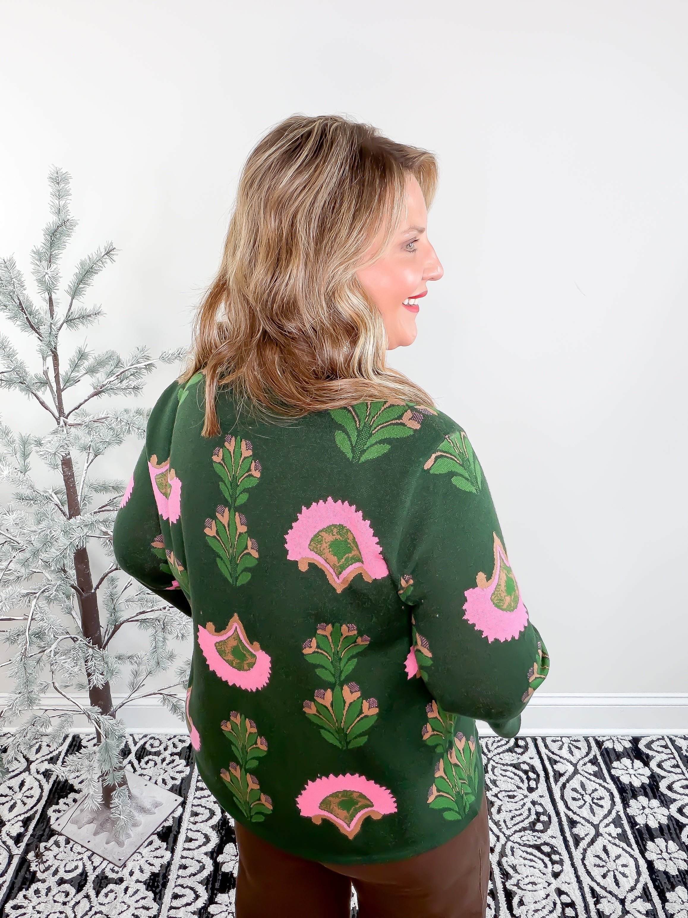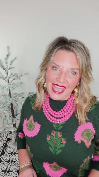 Bloom into style with this charming green top featuring a pink floral pattern. Perfect for garden parties, brunch dates, or any occasion that calls for a touch of botanical beauty. The playful design brings fresh, feminine energy to your wardrobe while the classic green base keeps it versatile enough to pair with your favorite bottoms. Whether you're channeling cottage-core vibes or simply celebrating nature's palette, this top is your go-to for effortless, cheerful elegance.