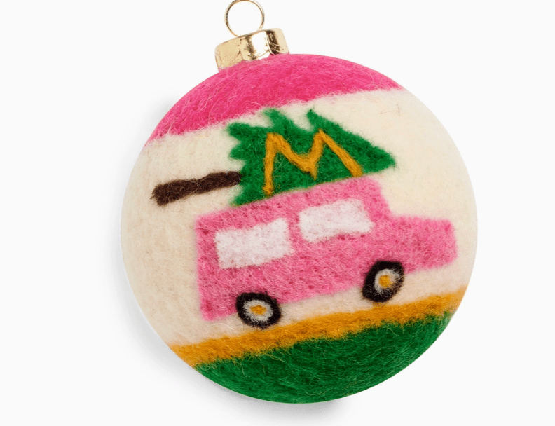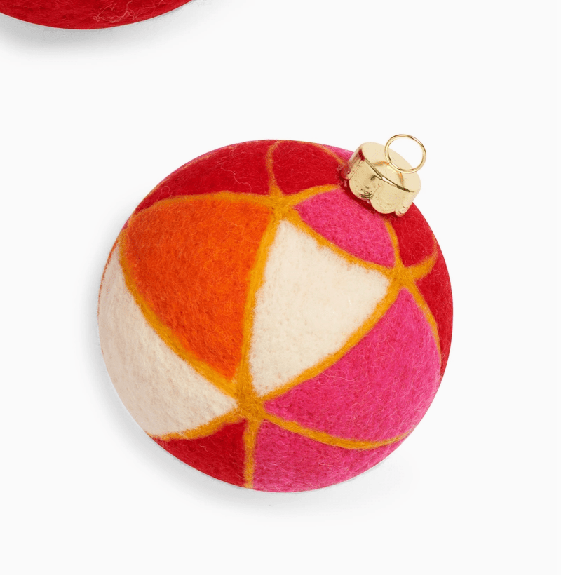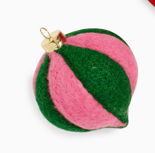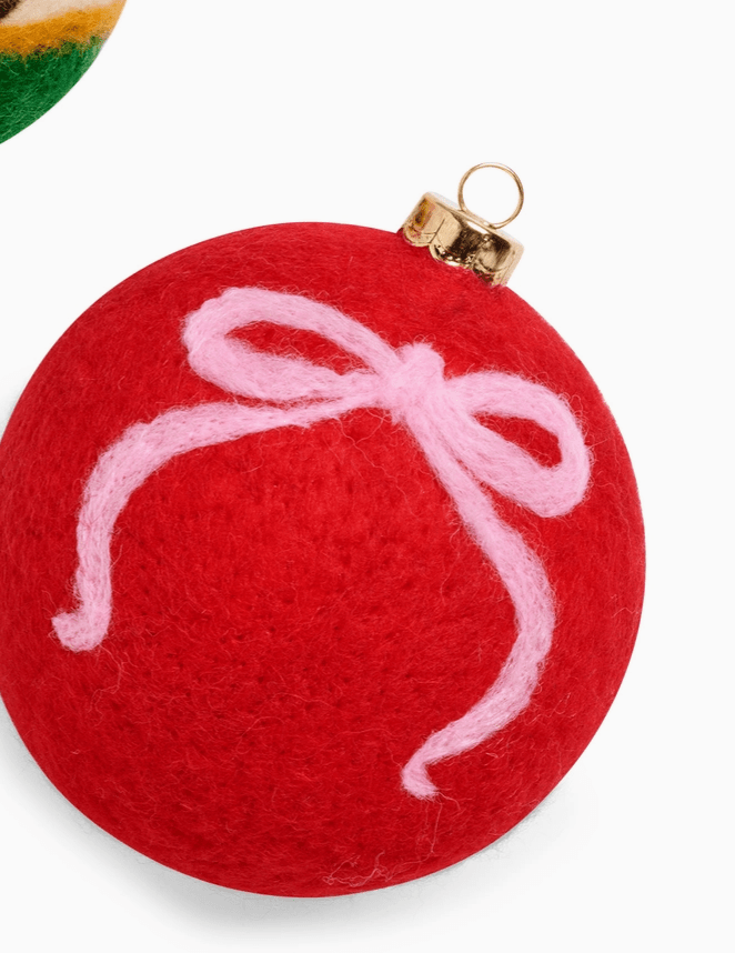 Add a pop of personality to your holiday tree with our Festive Bow Assorted Ornaments. Each ornament features a unique, hand-felted design in bright holiday hues—think retro stripes, a whimsical pink car with a tree, and bold color-block patterns. Topped off with a playful bow detail, this set brings a cheerful and cozy vibe to any branch. Lightweight and charming, they’re perfect for gifting or keeping for your own festive flair.