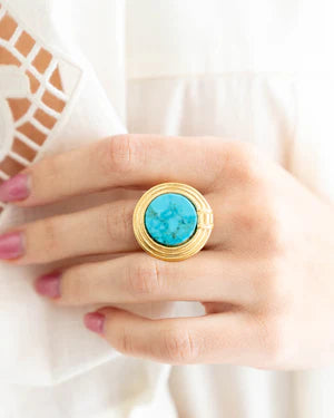 Make a statement with the Roma Ring, now available in a variety of unique, sought-after stones in a range of colors from vibrant Turquoise to swirling Malachite. Bold, gold, and timeless, the Roma Ring will elevate any outfit.