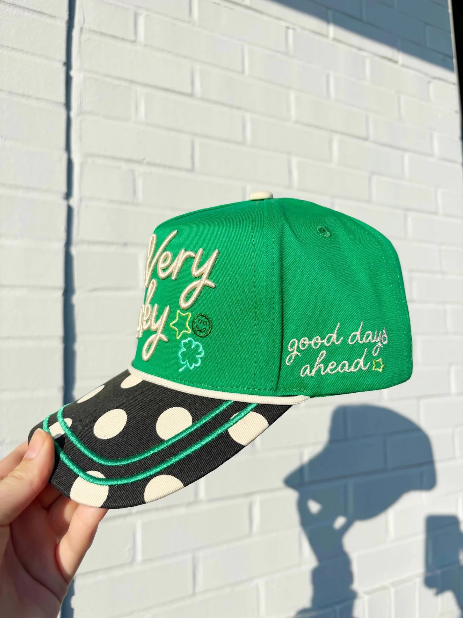 Manifest positivity with this bold, "So Very Lucky" Hat featuring high-definition 3D embroidery and a playful polka-dot brim. Designed for those who lead with good energy, this "lucky charm" accessory instantly elevates your streetwear game.