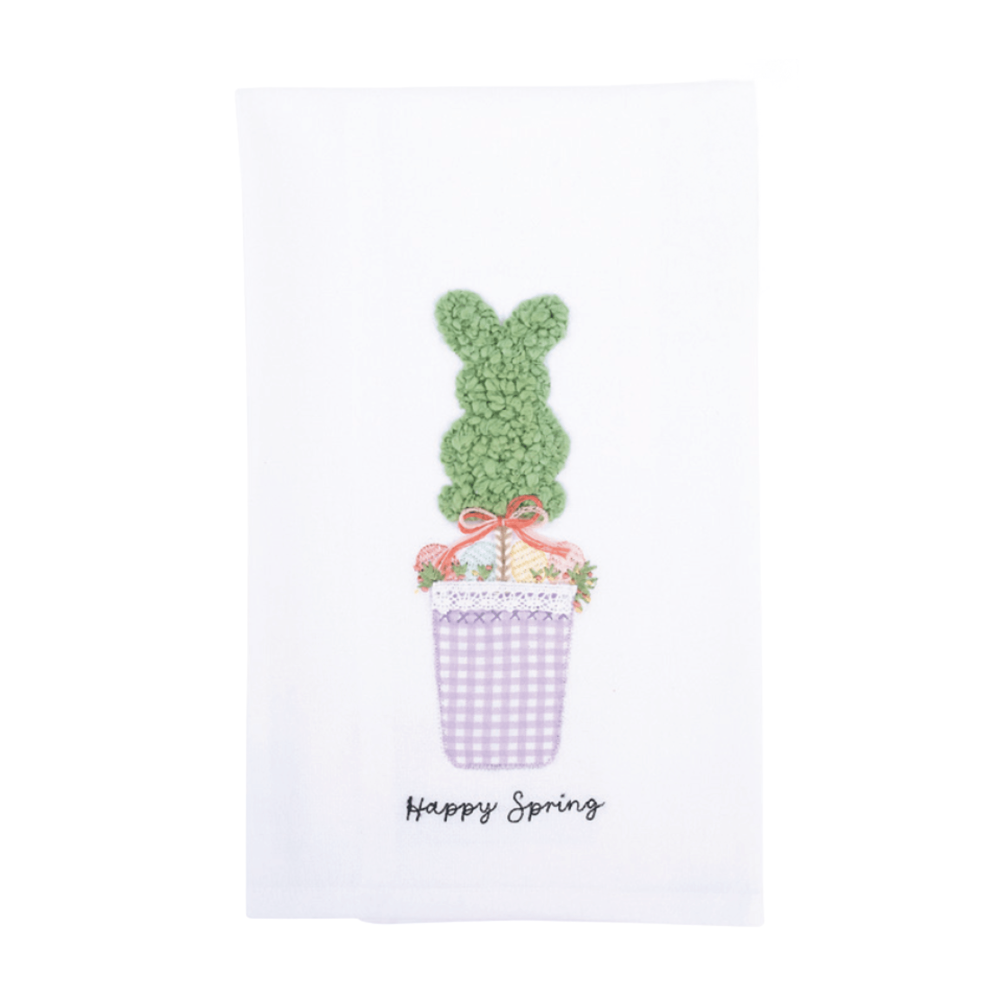 Refresh your home with the Whimsical Bunny Topiary Tea Towel, a perfect blend of seasonal charm and everyday utility. Featuring a delightful textured bunny topiary, a lavender gingham pot, and "Happy Spring" embroidery, this absorbent kitchen towel adds a cheerful pop of color to your Easter celebrations and spring brunch gatherings.