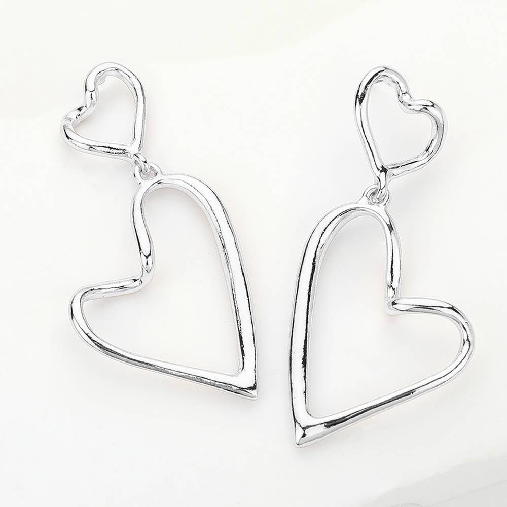 Express your style with open heart drop earrings featuring a sleek double-heart design. Lightweight and refined, these earrings offer a romantic touch to any outfit and make the perfect gift for someone special. A timeless accessory for day or night wear.