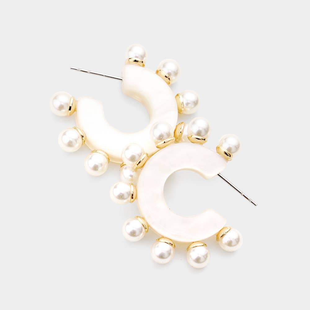 Enhance your style with these pearl-accented hoop earrings, blending modern design with timeless sophistication. Their chic silhouette and artistic detailing make them perfect for elevating any outfit, adding a touch of glamour and refined elegance to both day and evening looks.