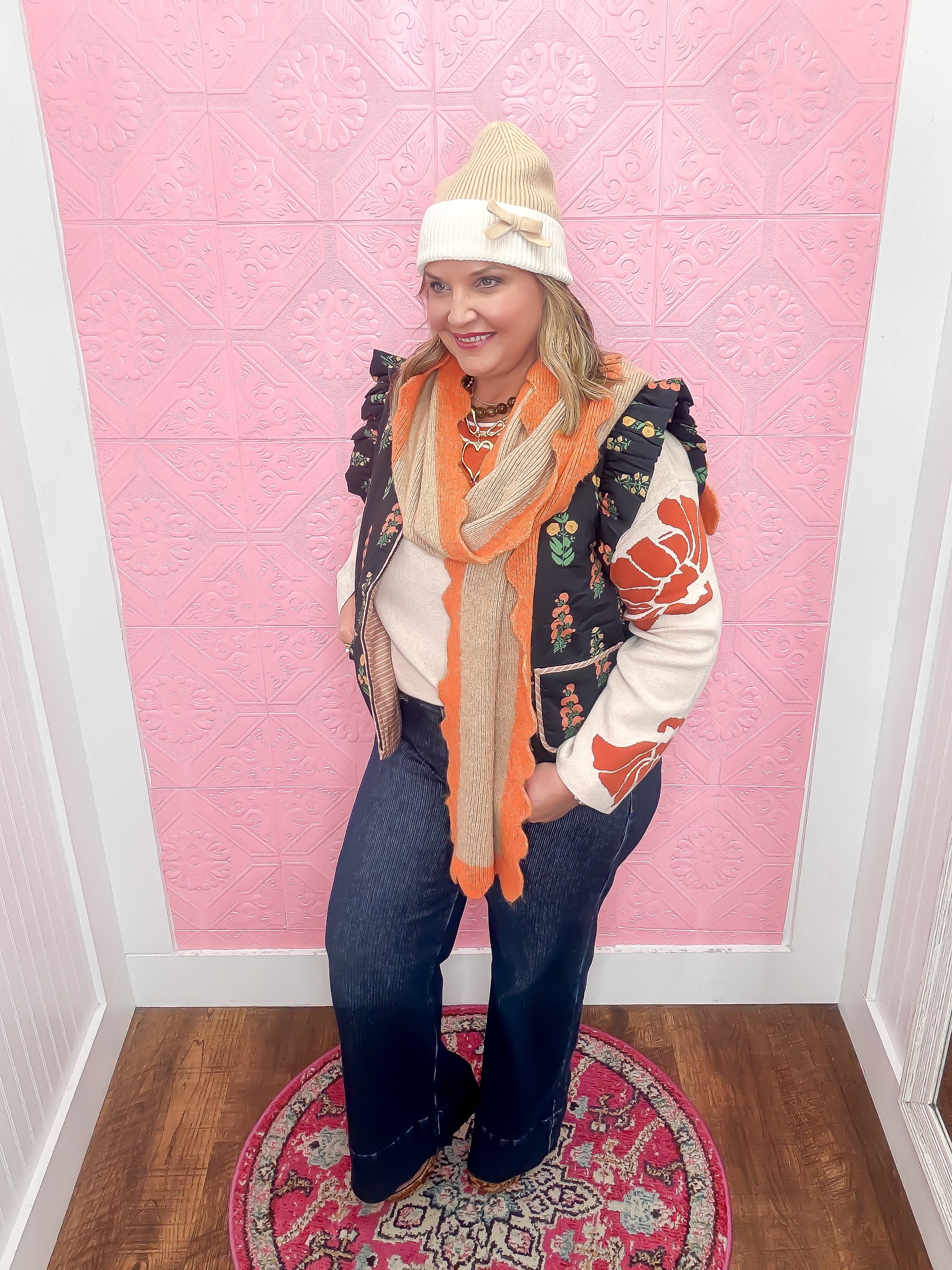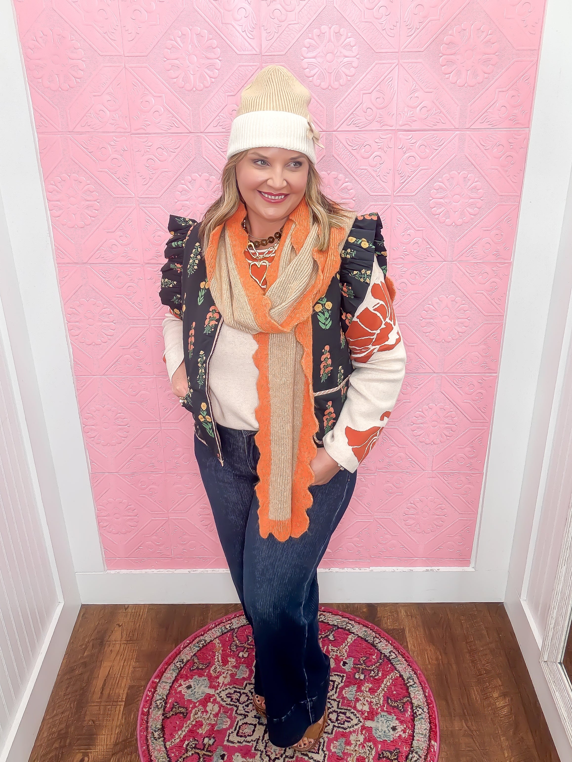 Add a splash of charm to your wardrobe with the Amberleaf Ruffle Sleeve Vest. Featuring a lively floral print, easy zipper closure, and handy pockets, this vest effortlessly blends style and function. The playful ruffle sleeves bring a flirty flair, making it perfect for layering on breezy days or dressing up your casual look.