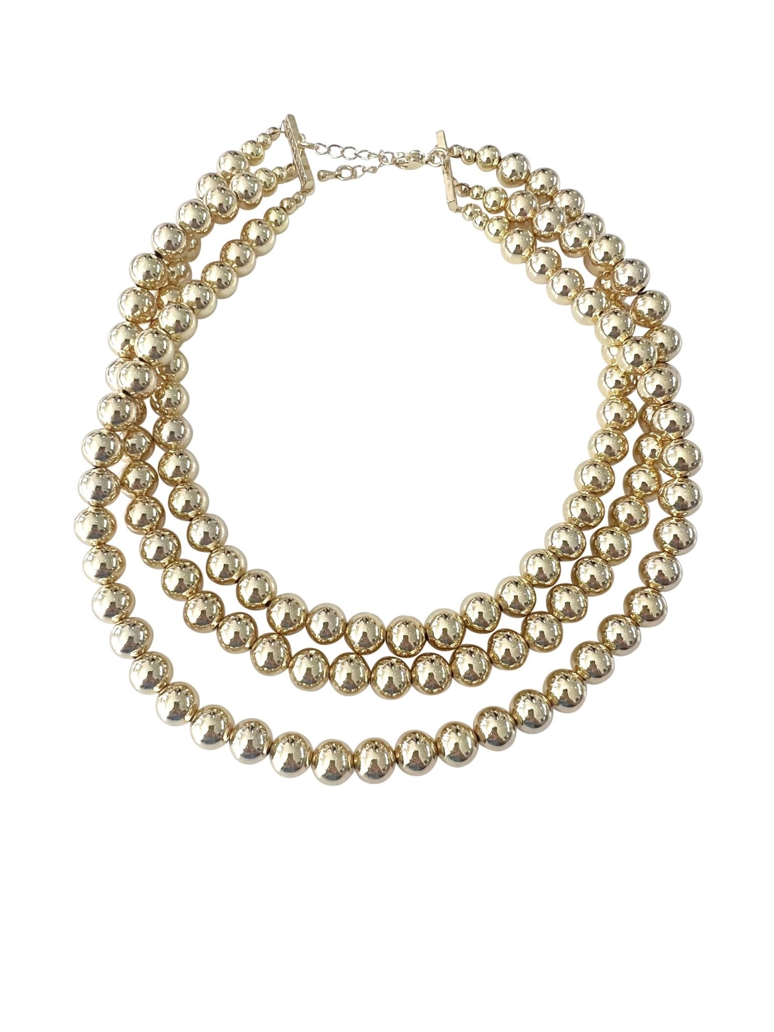 The Collette Triple Strand Necklace brings instant glam to your style game! This sassy medium-sized 18" adjustable piece features three fabulous strands of 18k gold-plated goodness that won't lose its shine. Dress it up for that fancy dinner date, rock it at the office for some cubicle chic, or pair with jeans for a "yes, I woke up this fabulous" everyday look. Your neck deserves this much fun!