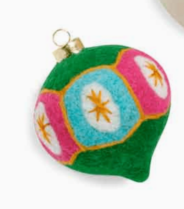 This vibrant set includes a jolly mix of shapes and designs, featuring a playful nutcracker, retro-style baubles, and a cheerful “Ho Ho Ho” ornament. Made from soft, hand-felted wool with bold colors and charming details, these ornaments add a touch of nostalgic whimsy to your holiday décor. Each piece is lightweight yet eye-catching—perfect for trees big or small.
