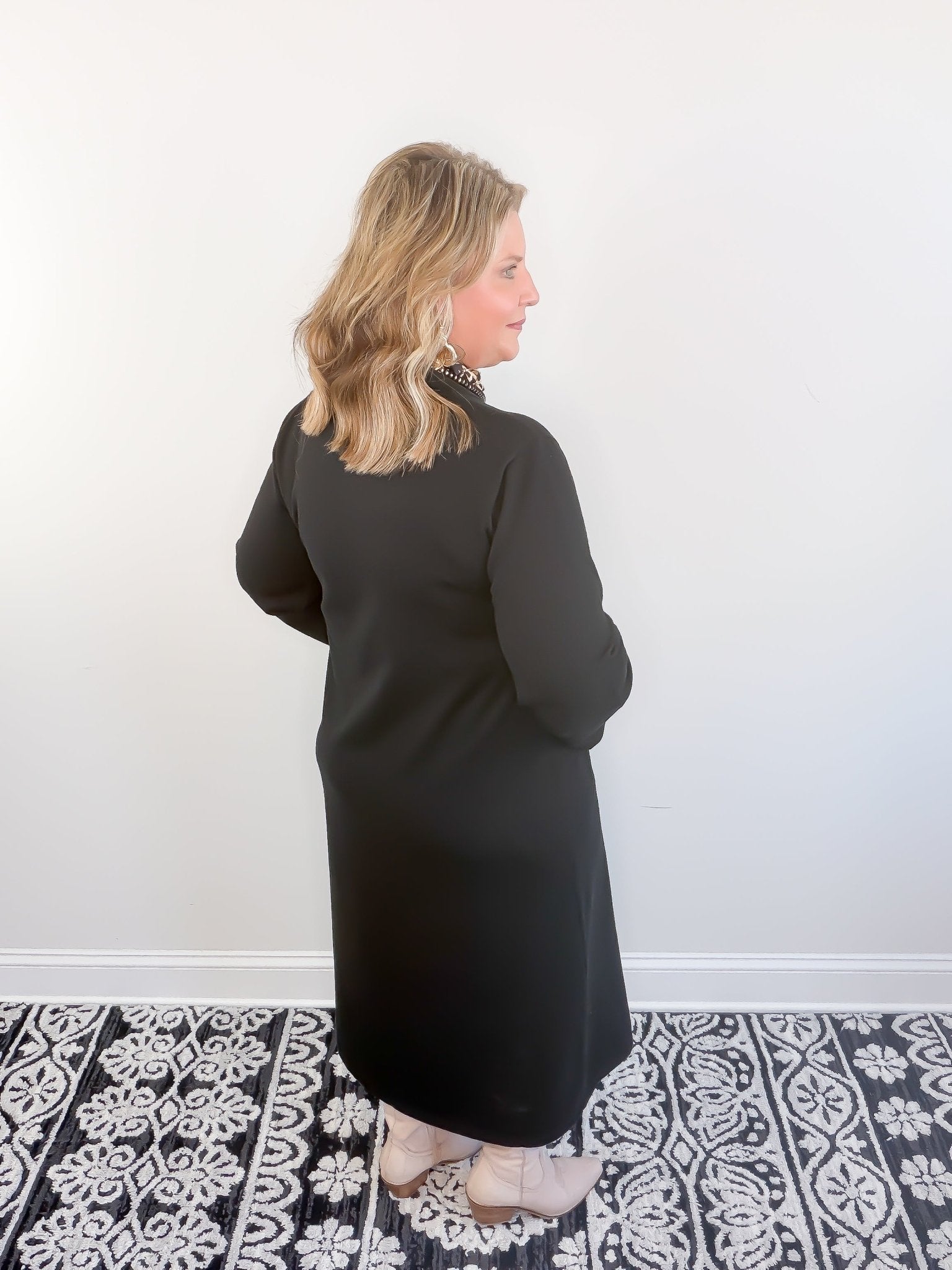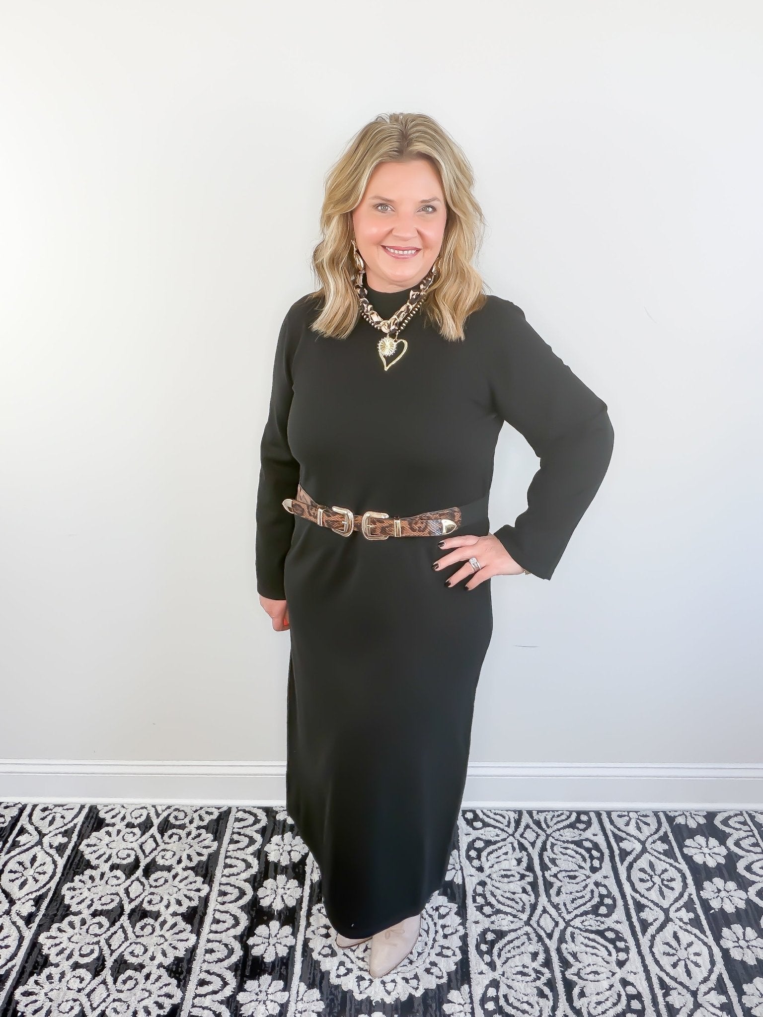 Step into effortless style with the Timeless Ease Midi Dress. This solid knit dress features a cozy mock neck and long sleeves, perfect for cooler days. Its medium-weight fabric is non-sheer, offering comfortable coverage without the need for lining. Whether you're dressing up or down, this midi length piece brings playful sophistication to your wardrobe with ease.