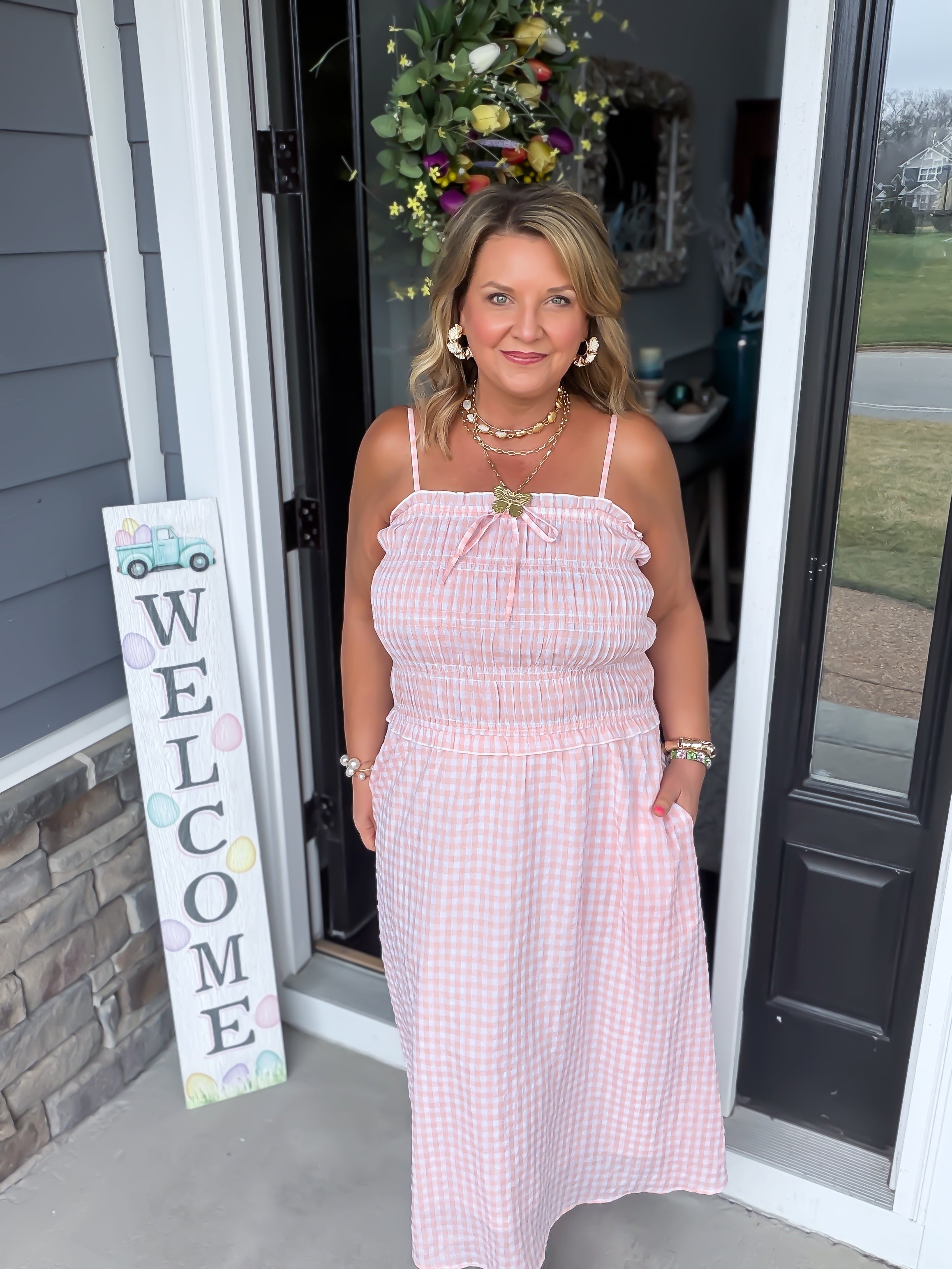 Embrace effortless charm with our Summer Picnic Gingham Maxi Dress. Featuring a timeless pink check pattern and a flattering smocked bodice, this dress offers a "cottage core" aesthetic with modern comfort. Designed with adjustable spaghetti straps and hidden side pockets, it’s the ultimate grab-and-go piece for sunny weekends, farmer's markets, and garden parties.