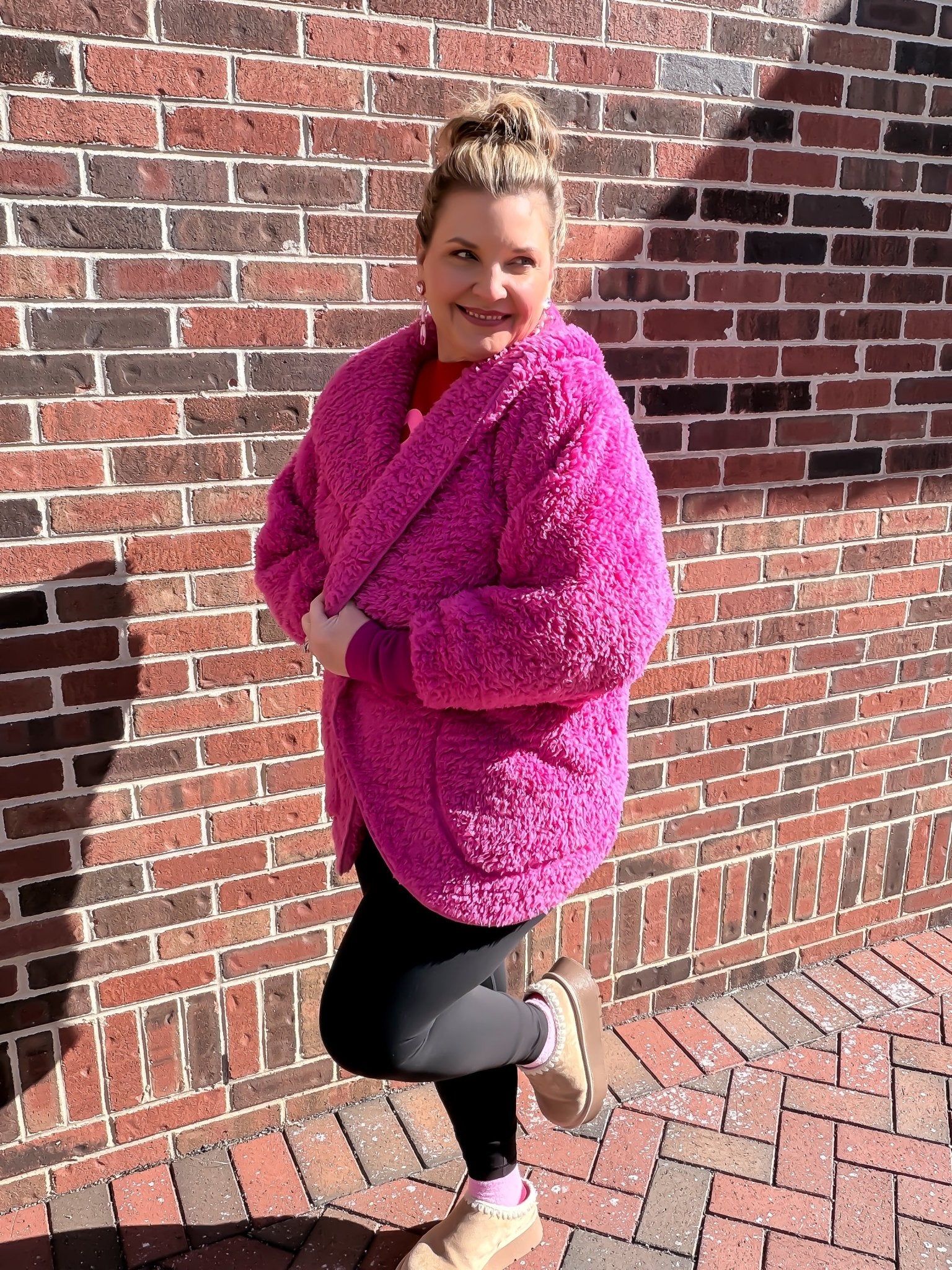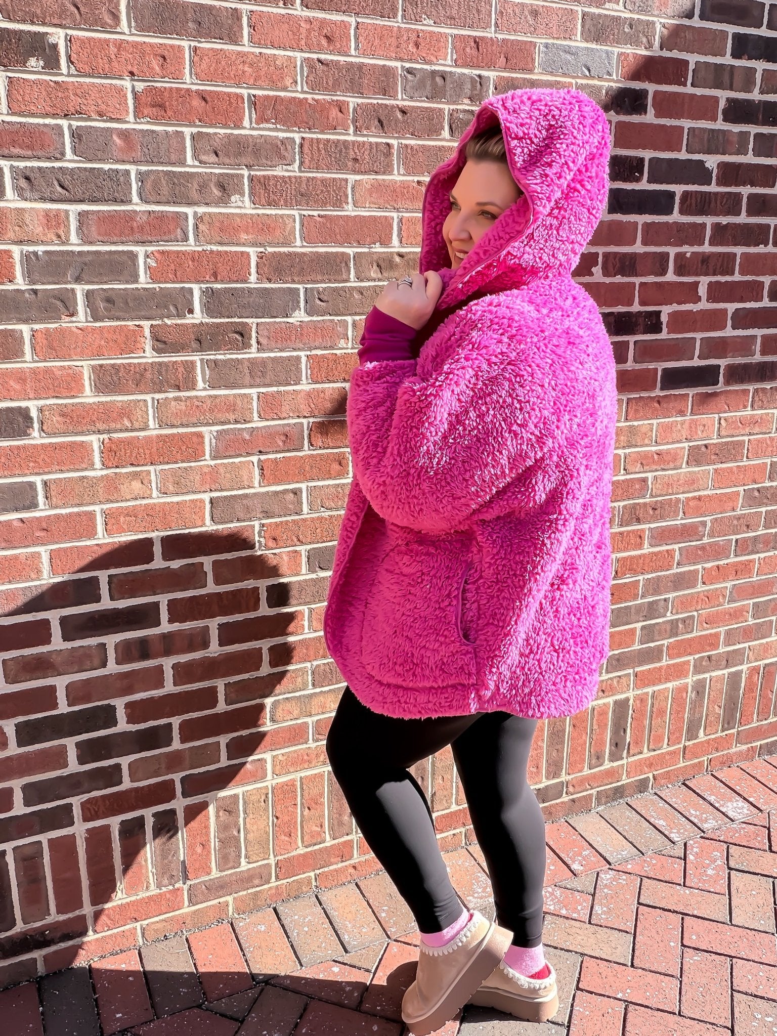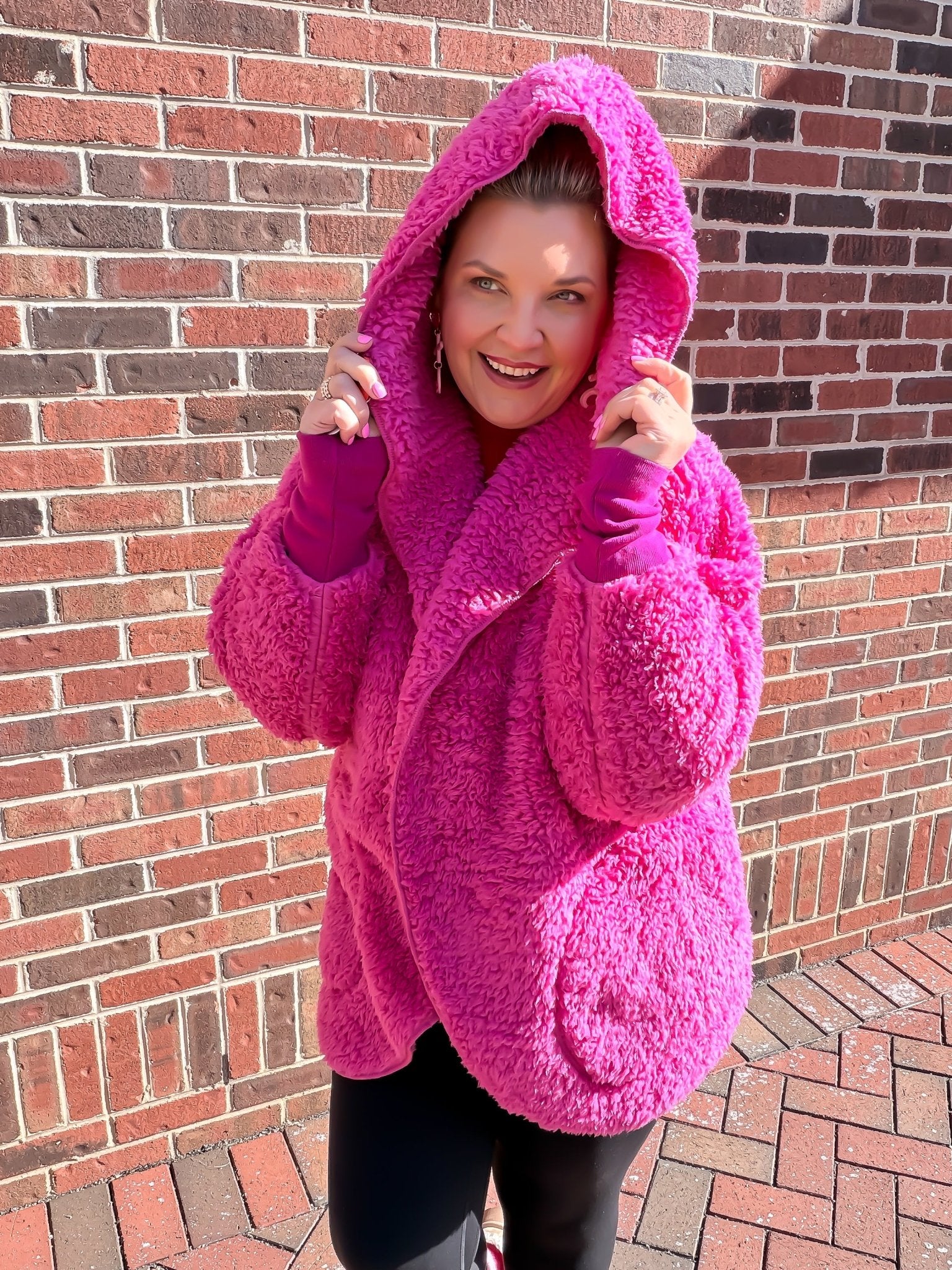 Wrap yourself in pure power with this hot pink body wrap that's as bold as you are. Featuring a cozy hood to frame your face and functional pockets to keep your essentials close, this piece combines comfort with serious style. Perfect for lounging, layering, or making a statement wherever you go. Slip it on and own the room.