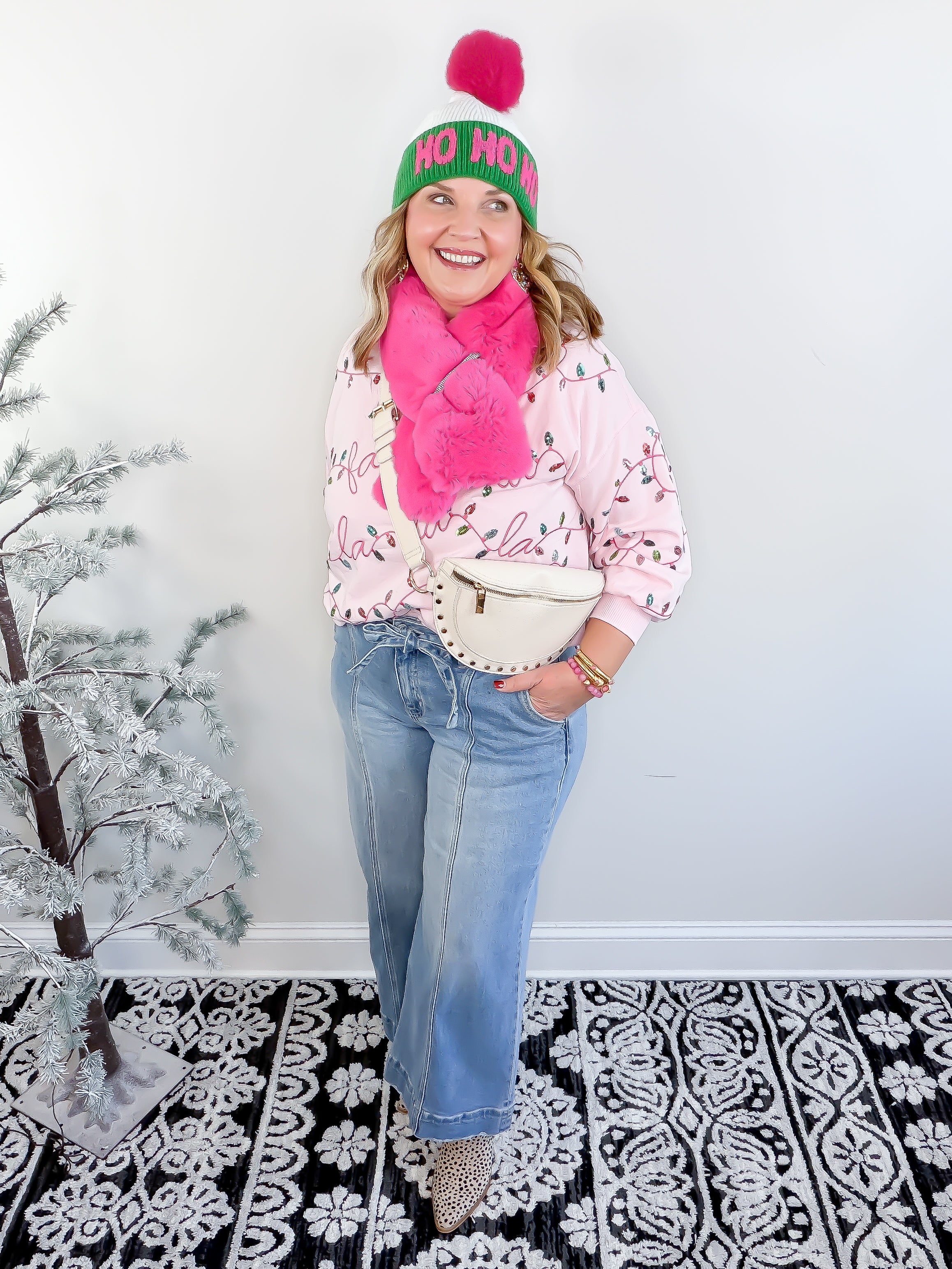 Bring holiday joy to your wardrobe with the Twinkle & Cheer Sweatshirt, inspired by the gentle glow of falala light strands. Soft and cozy, this festive sweatshirt wraps you in warmth while adding a playful sparkle to your seasonal style. Perfect for celebrating the holidays with comfort and cheer!