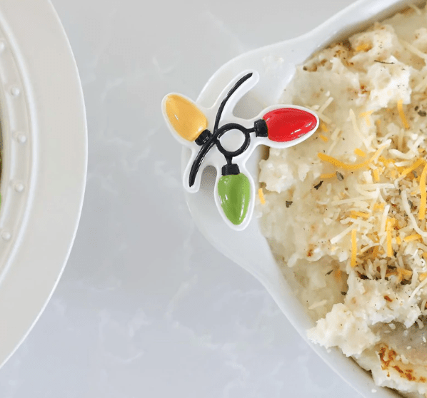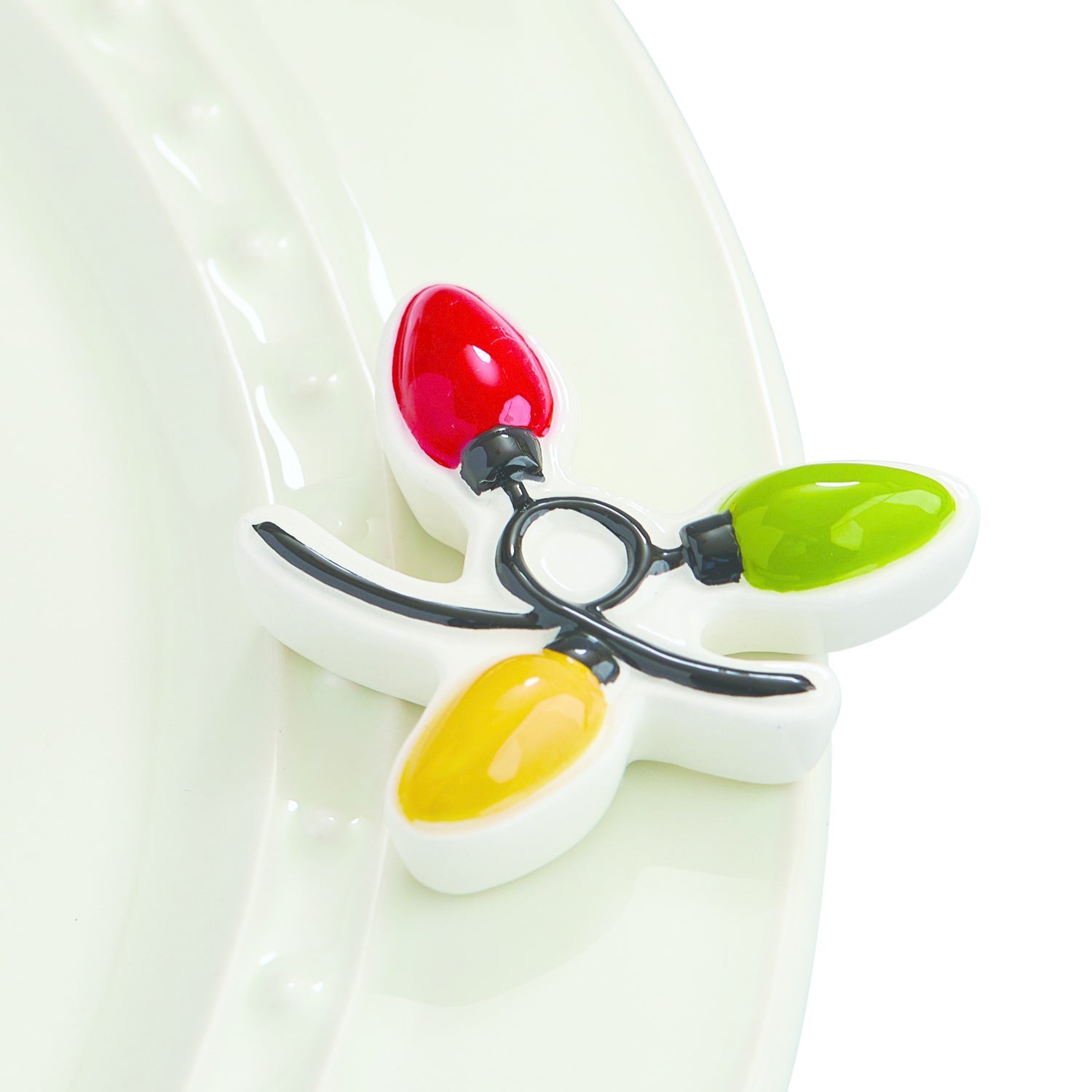Get lit with this Nora Fleming string of lights Christmas attachment featuring a red, yellow, and green lightbulb!
