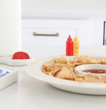 For the cutest cookout on the block, just add this mini! You’ll love the gold Nora Fleming emblem on both the sunny yellow mustard and the jubilant red ketchup!