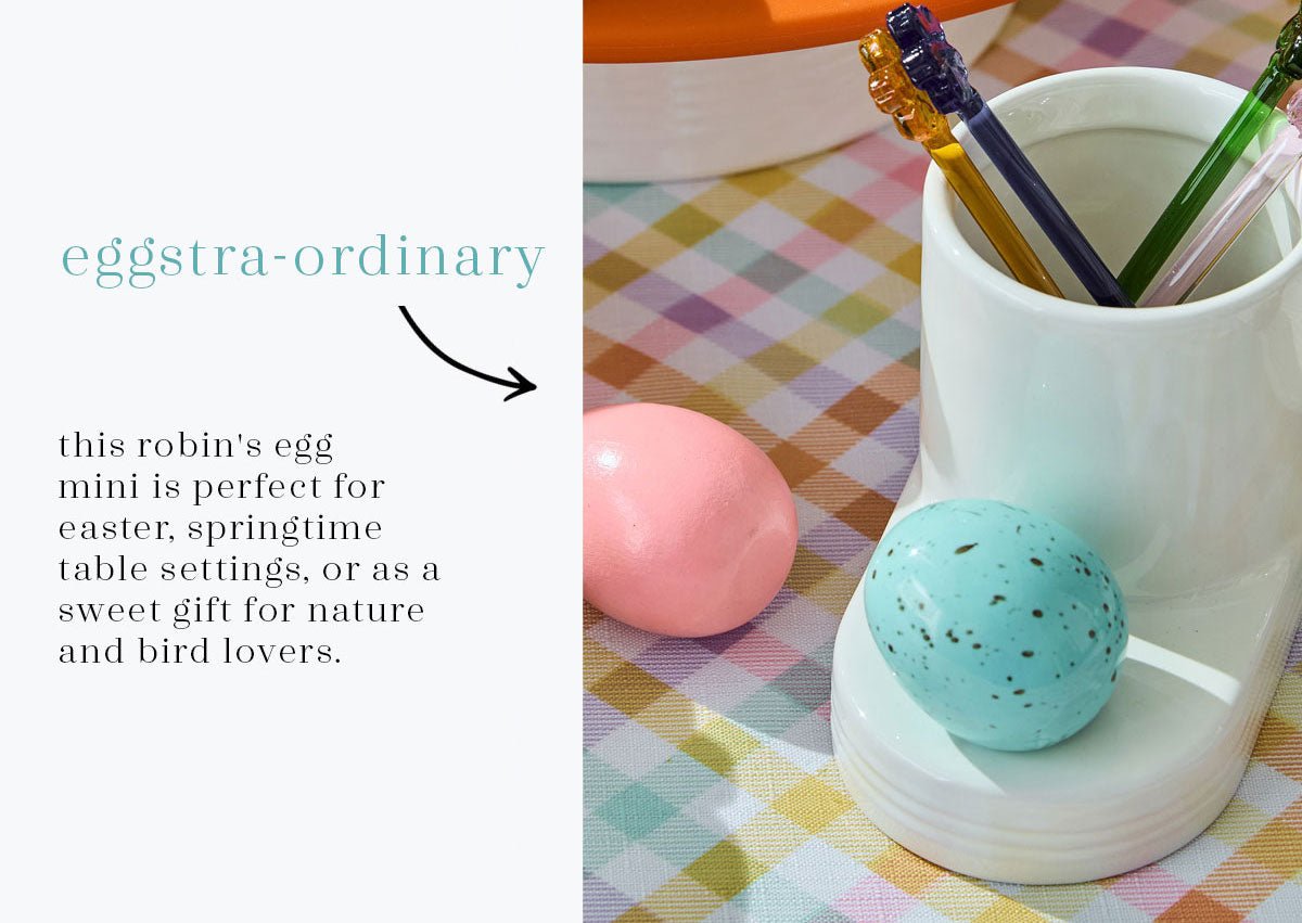 This robin's egg mini is perfect for Easter, springtime table settings, or as a sweet gift for nature and bird lovers.