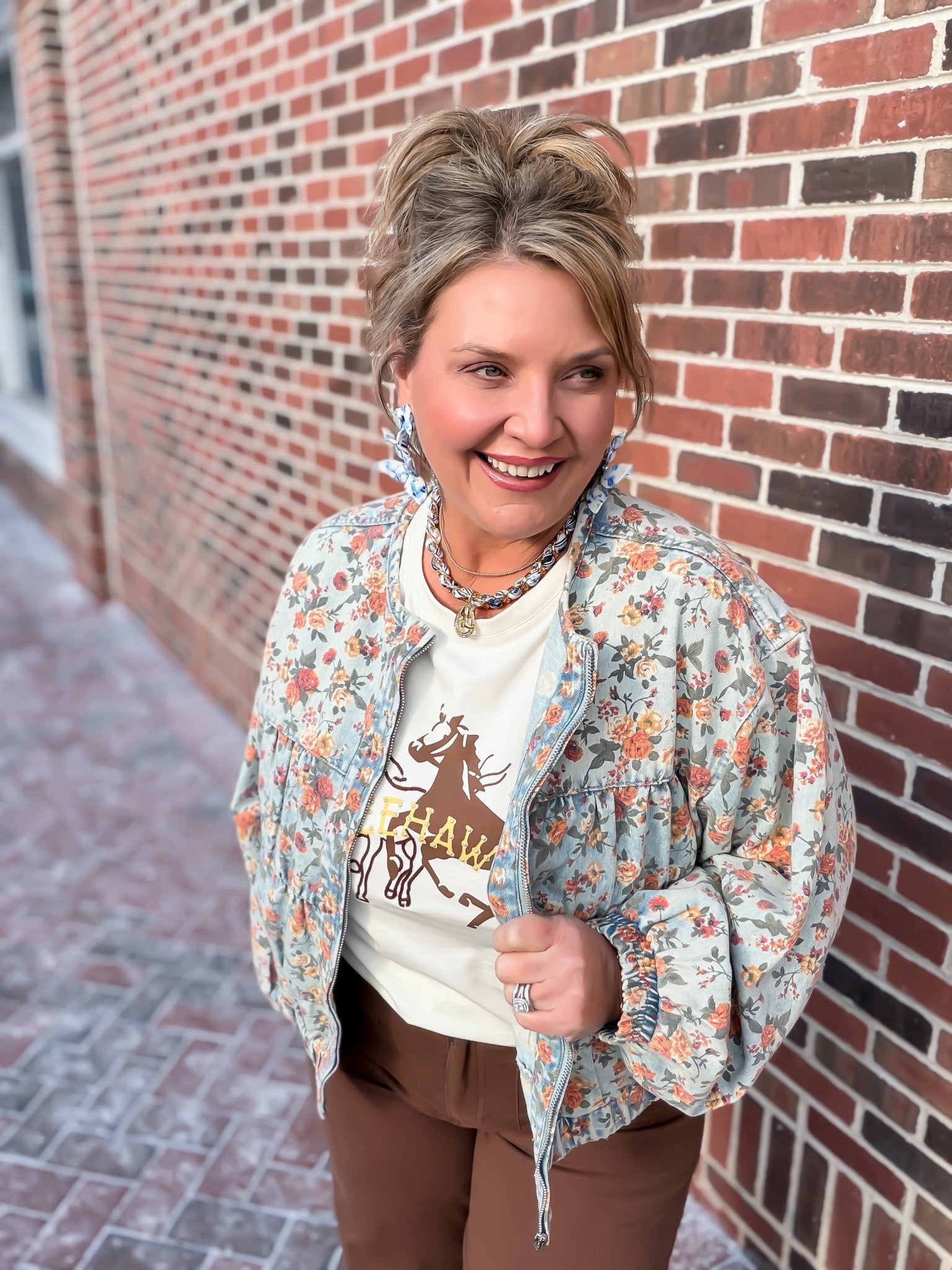 Elevate your everyday style with our Vintage Vine Denim Jacket. This unique statement piece blends romantic cottagecore aesthetics with a rugged western edge. Featuring a stunning sun-drenched floral print and a tiered, feminine silhouette, this jacket is designed for the woman who isn’t afraid to stand out. Crafted from a premium cotton-rich blend, it offers the perfect balance of structure and softness for year-round layering.