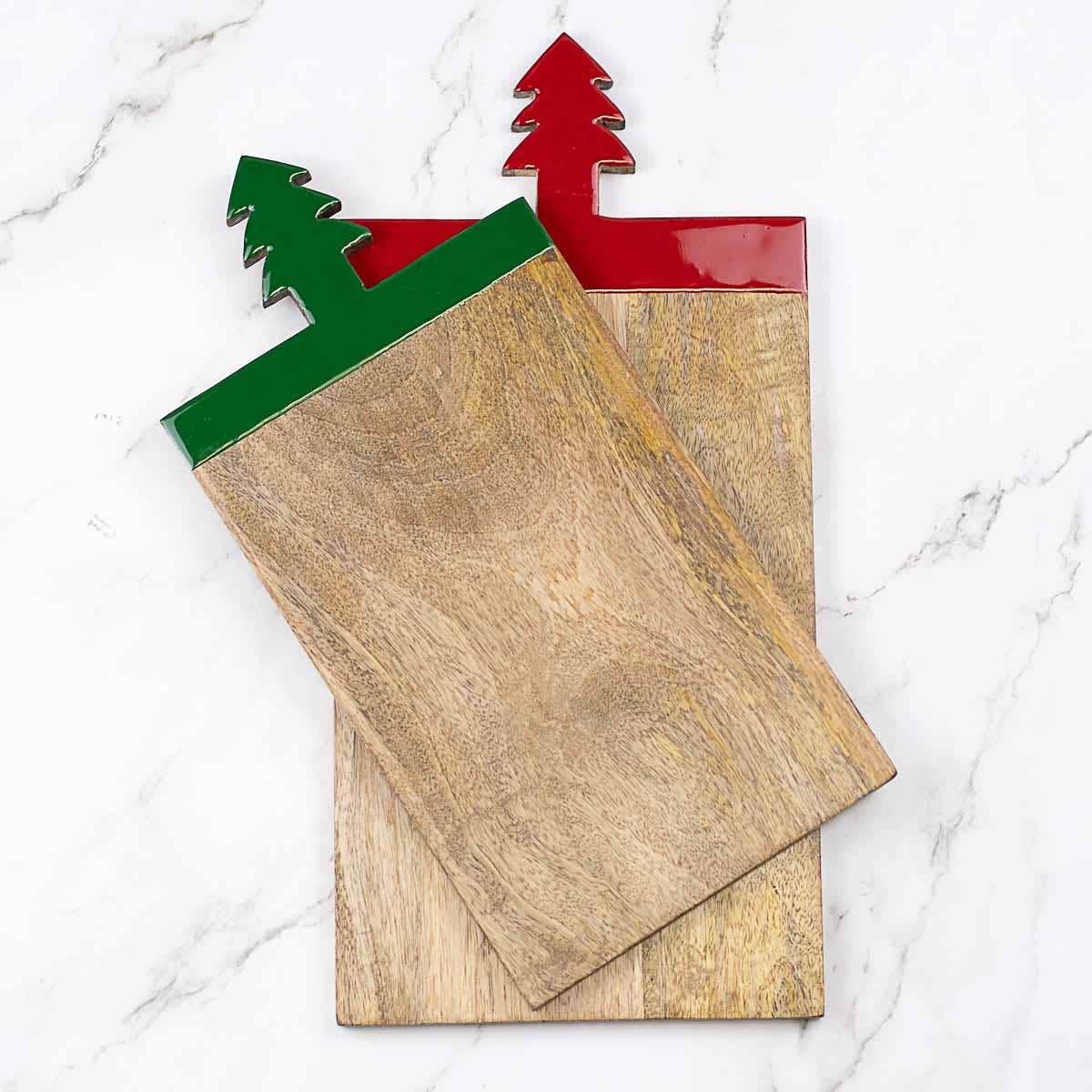 Get in the holiday spirit with our Christmas Tree Handle Serving Board! Made of durable wood, the festive tree shape adds a touch of seasonal cheer to your entertaining. Perfect for serving up delicious treats at your next Christmas gathering.