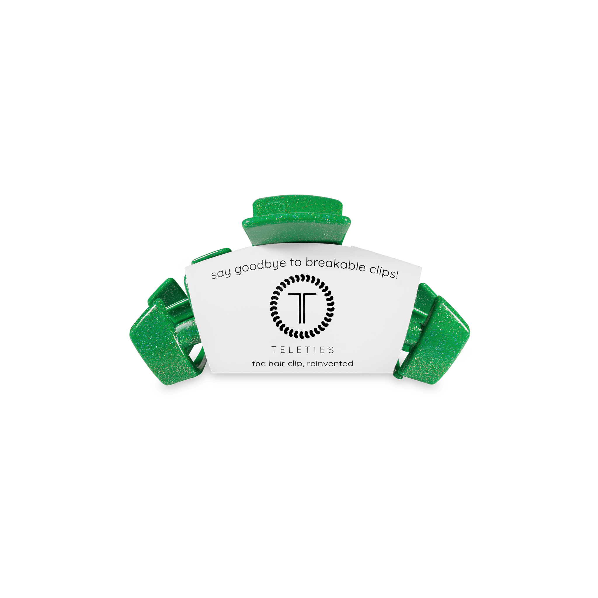 Step into the St. Patrick’s Day spirit with the TELETIES Shamrock Shimmer Classic Hair Clip! This sparkling green clip adds a pop of glam to your look and brings all the luck you need to brighten up your hairstyle.