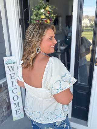 Sloane Embroidered Eyelet Puff Sleeve Blouse