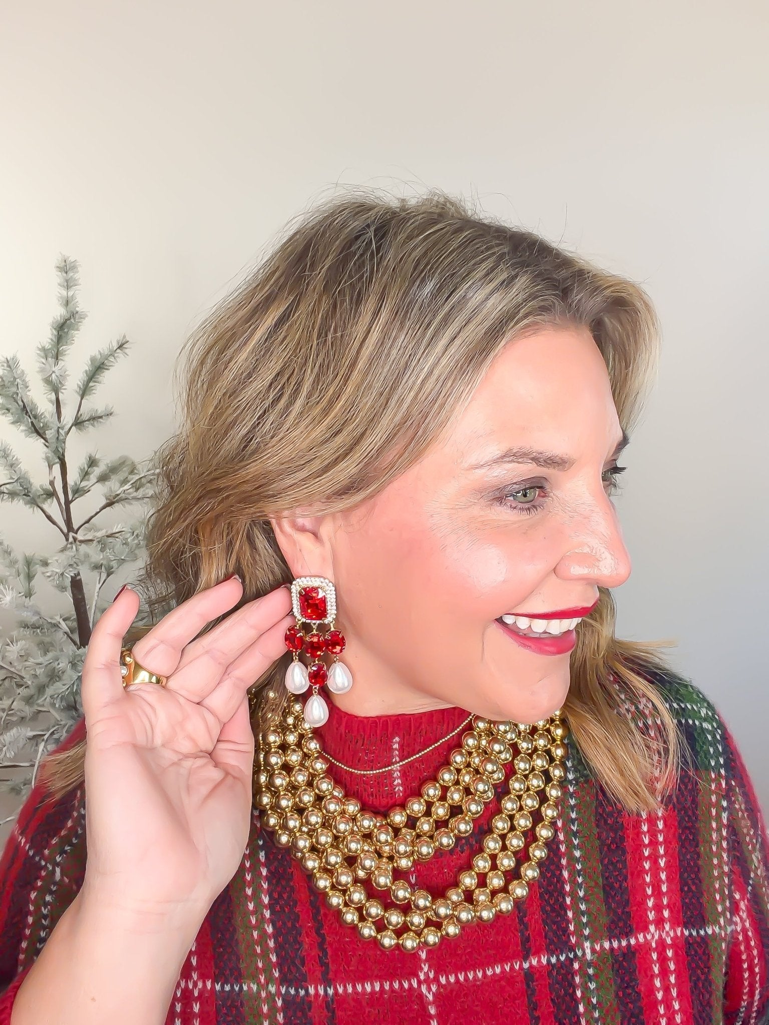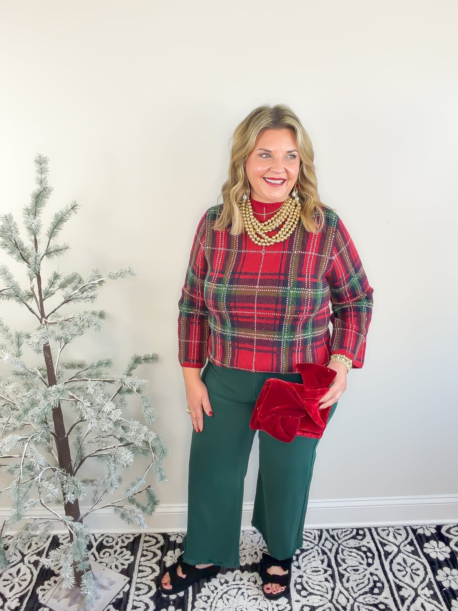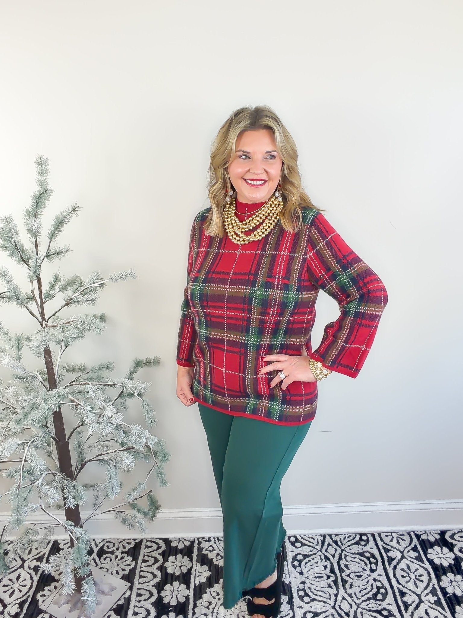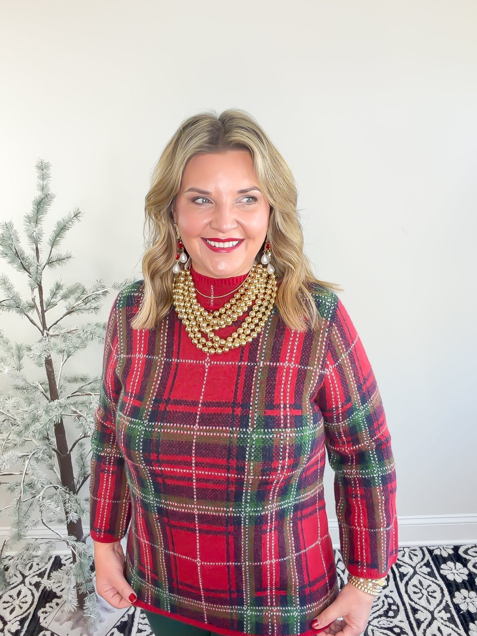 Cozy up in The Everyday Check Sweater in red, where casual comfort meets playful style. This plaid long-sleeve mock neck top features a relaxed fit that’s perfect for layering or wearing on its own. With medium-weight, non-sheer knit fabric, it keeps you comfy and covered without any fuss. Ready to brighten your everyday wardrobe with a splash of fun?