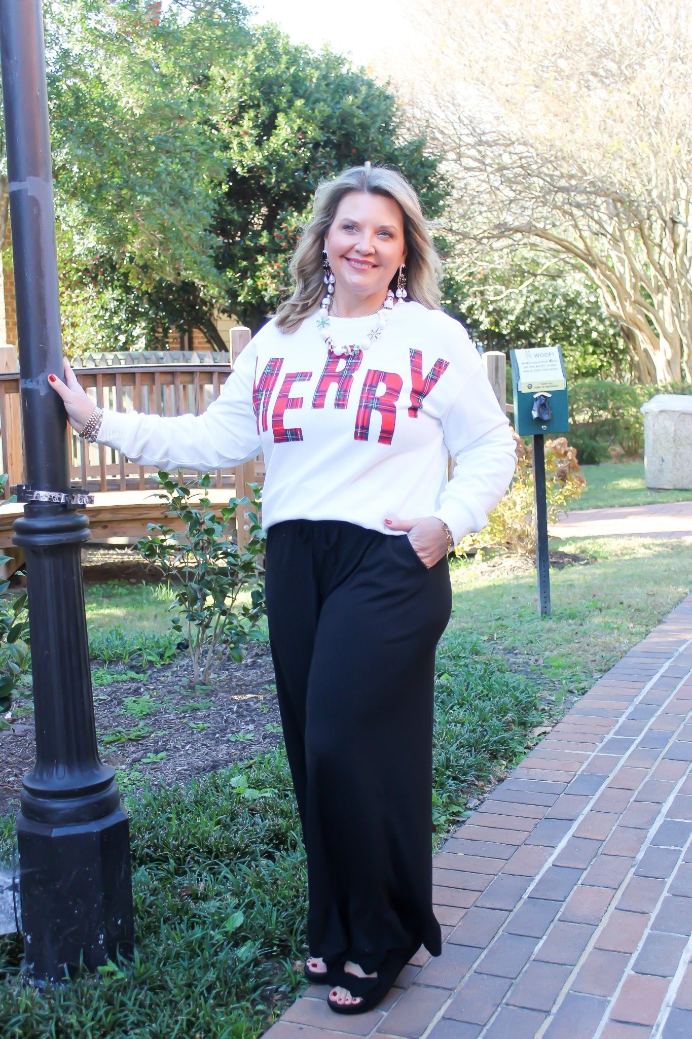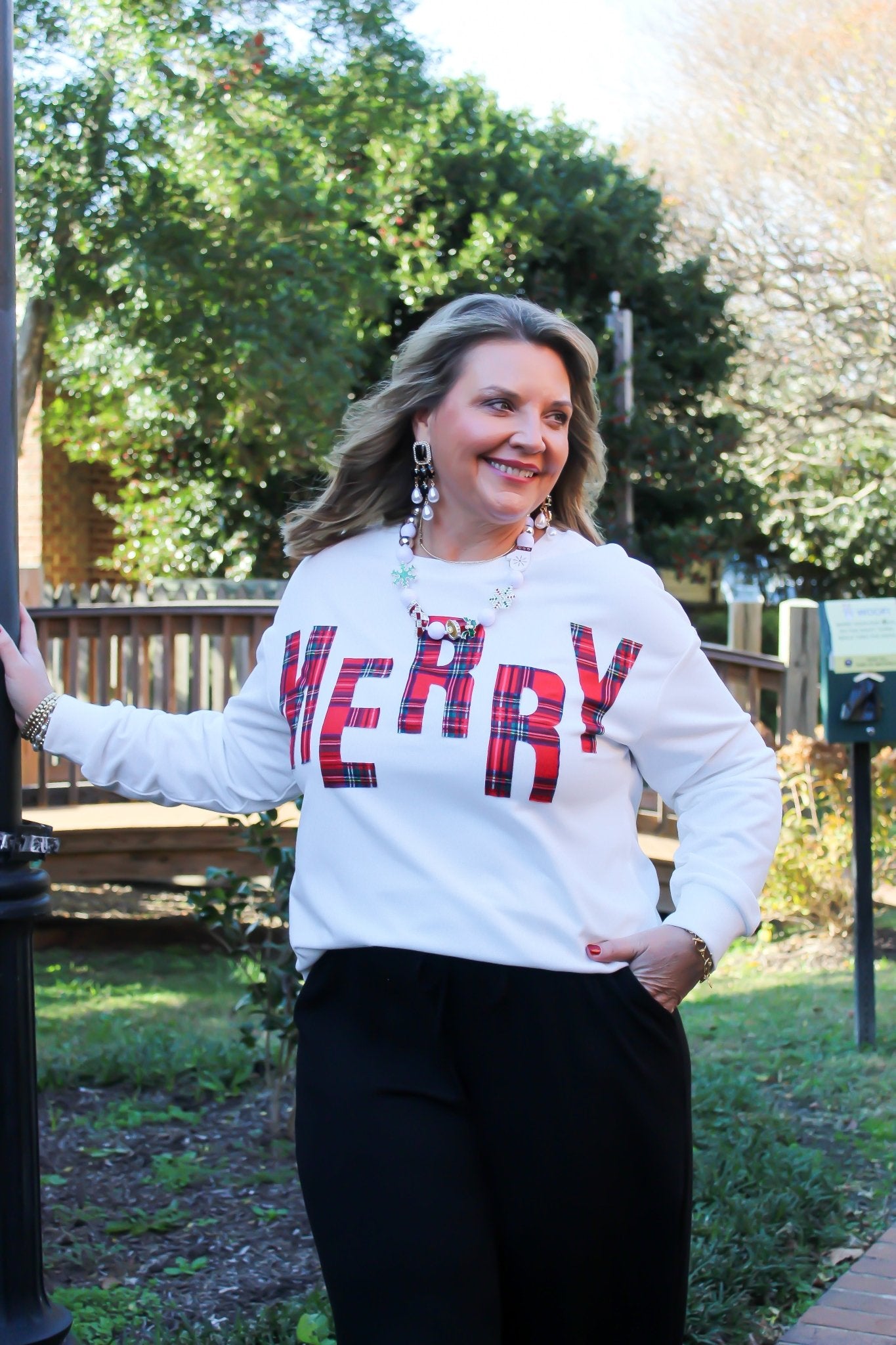 Spread holiday cheer in this cozy Plaid Merry Sweatshirt featuring a cheerful "Merry" letter print. Perfect for festive gatherings, casual winter days, or anyone who loves Christmas spirit year-round. The soft, comfortable fabric keeps you warm while the classic plaid pattern adds timeless style. Whether you're decorating, caroling, or simply embracing the season, this sweatshirt is your go-to piece for looking merry and bright.